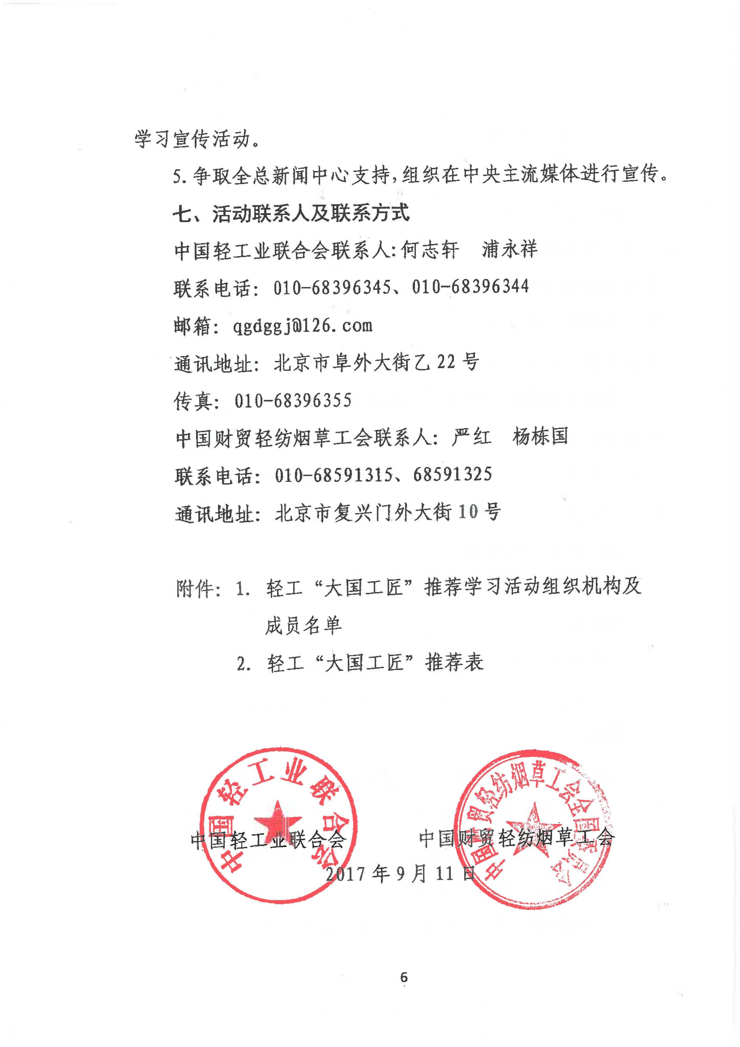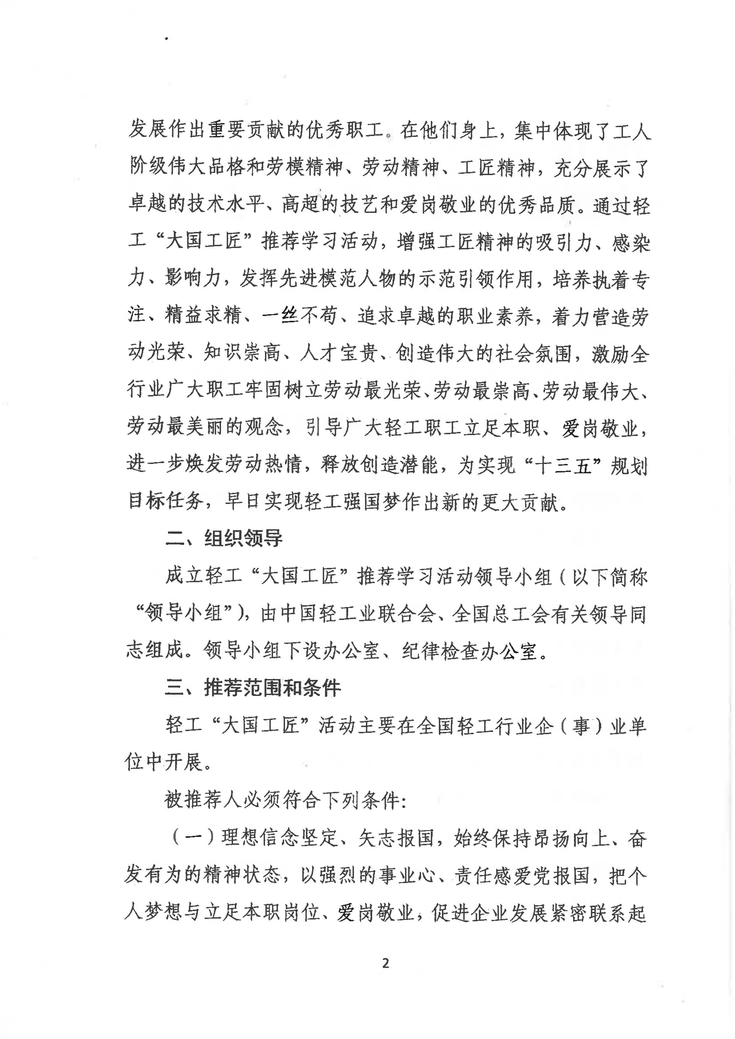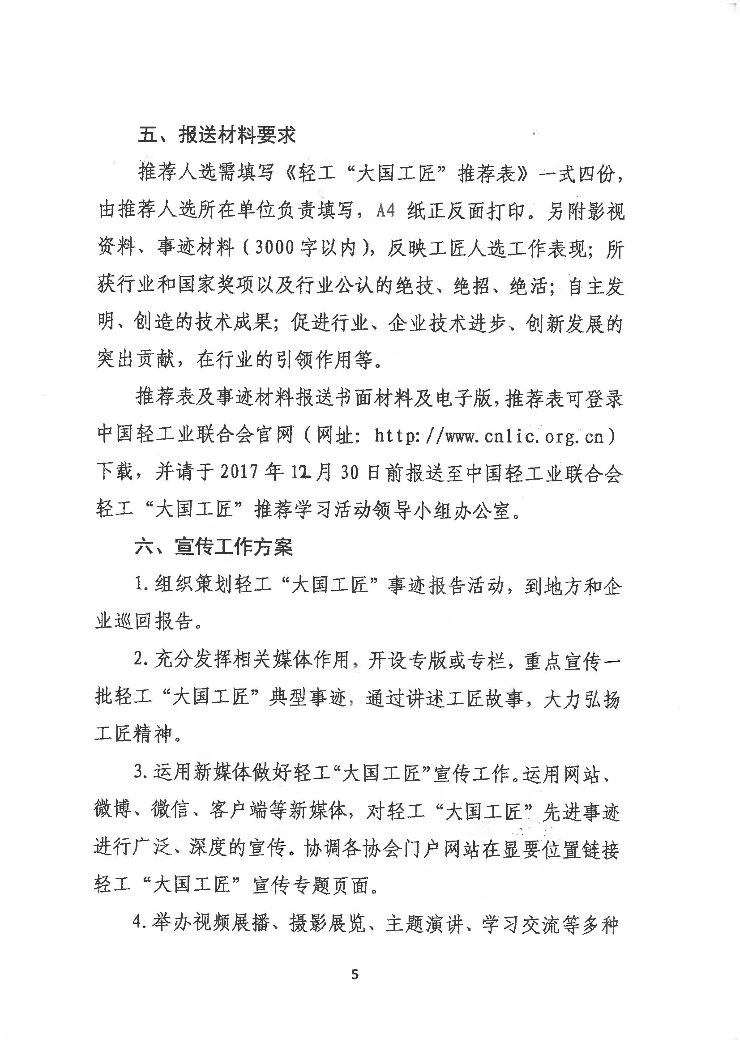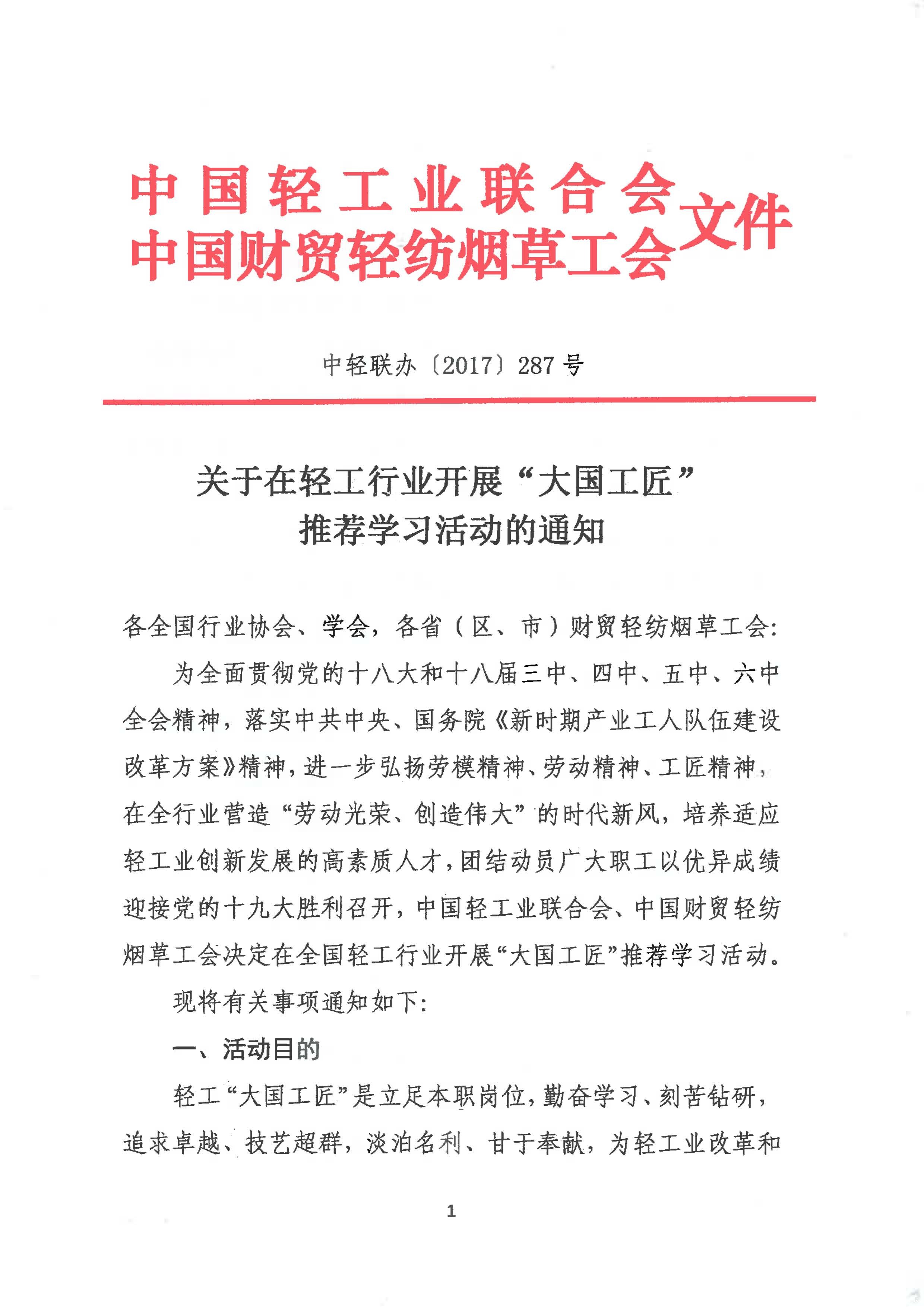 附件:《关于在轻工行业开展“大国工匠”推荐学习活动的通知》中轻联办〔2017〕287号