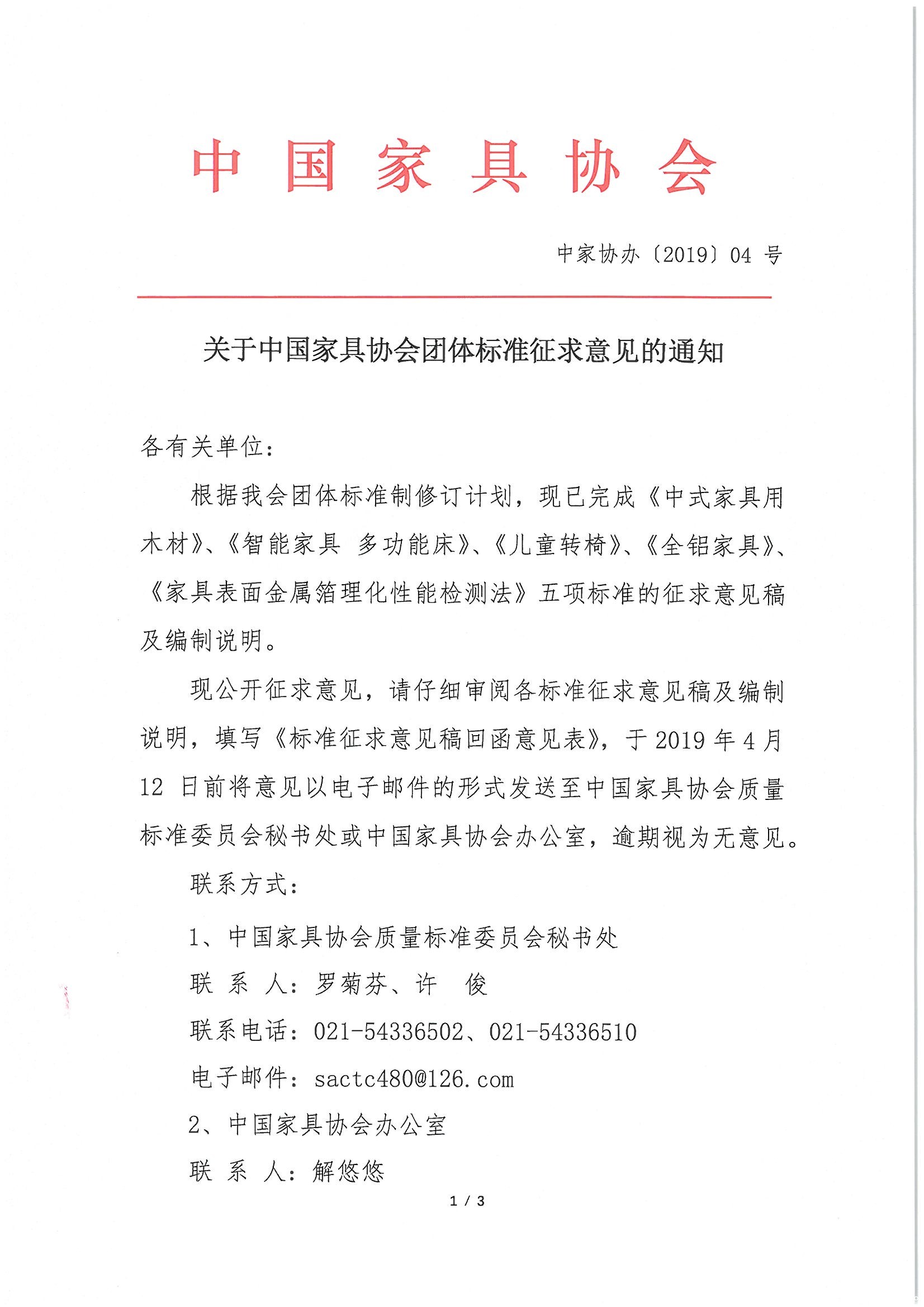 《关于优米app有哪些团体标准征求意见的通知》--中家协办﹝2019﹞04号