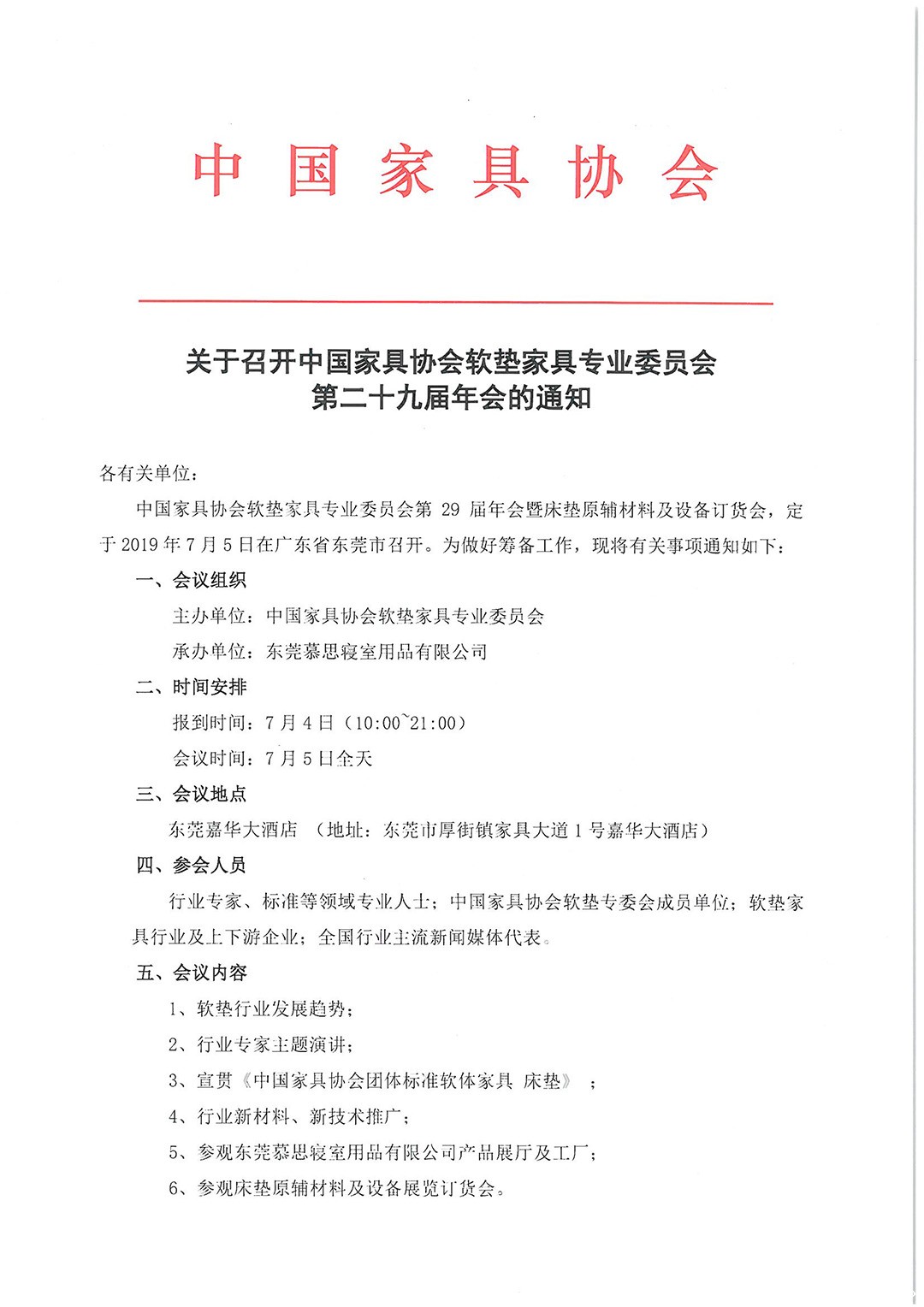 关于召开优米app有哪些软垫家具专业委员会 第二十九届年会的通知