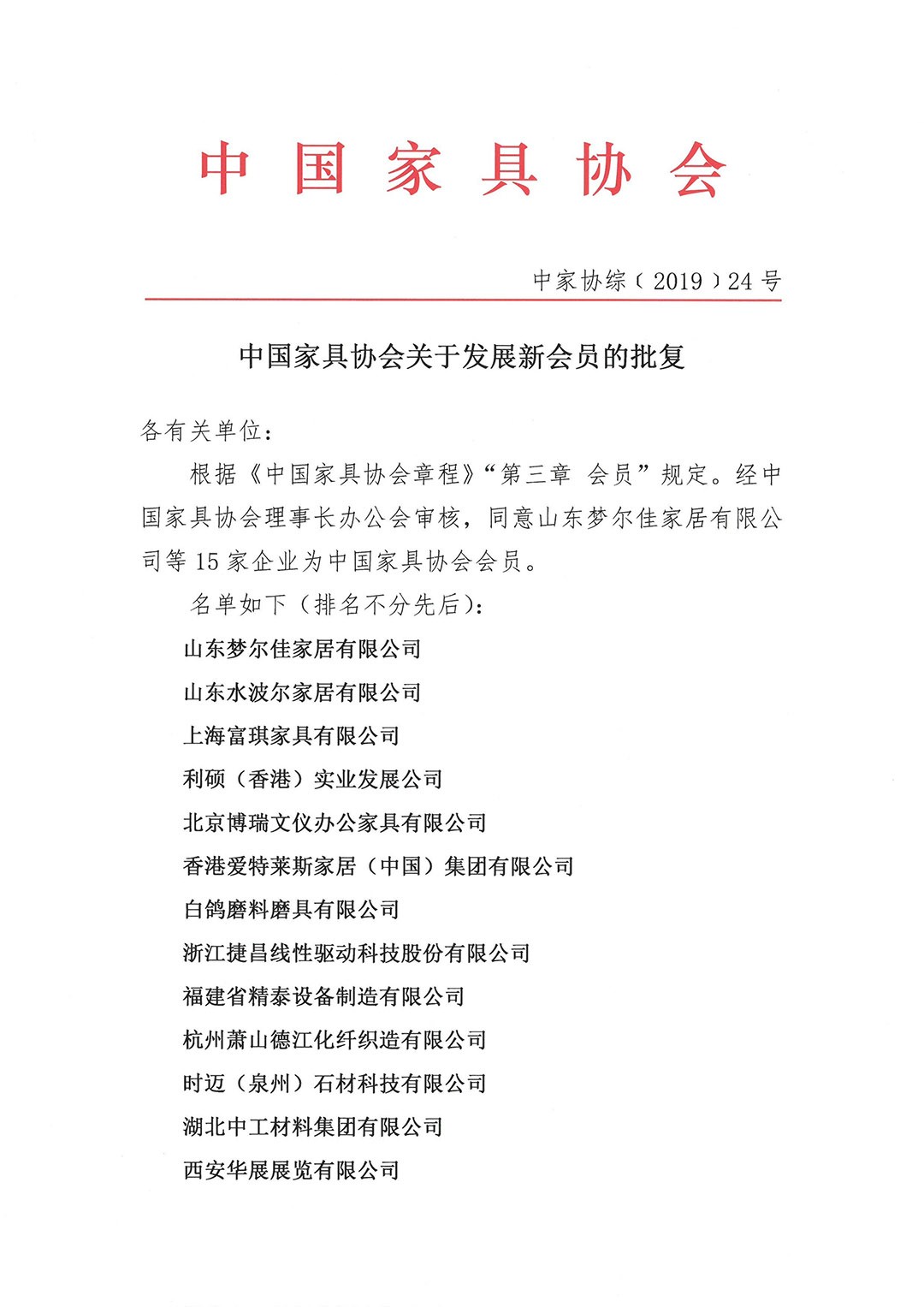优米app有哪些关于发展新会员的批复--中家协综﹝2019﹞24号