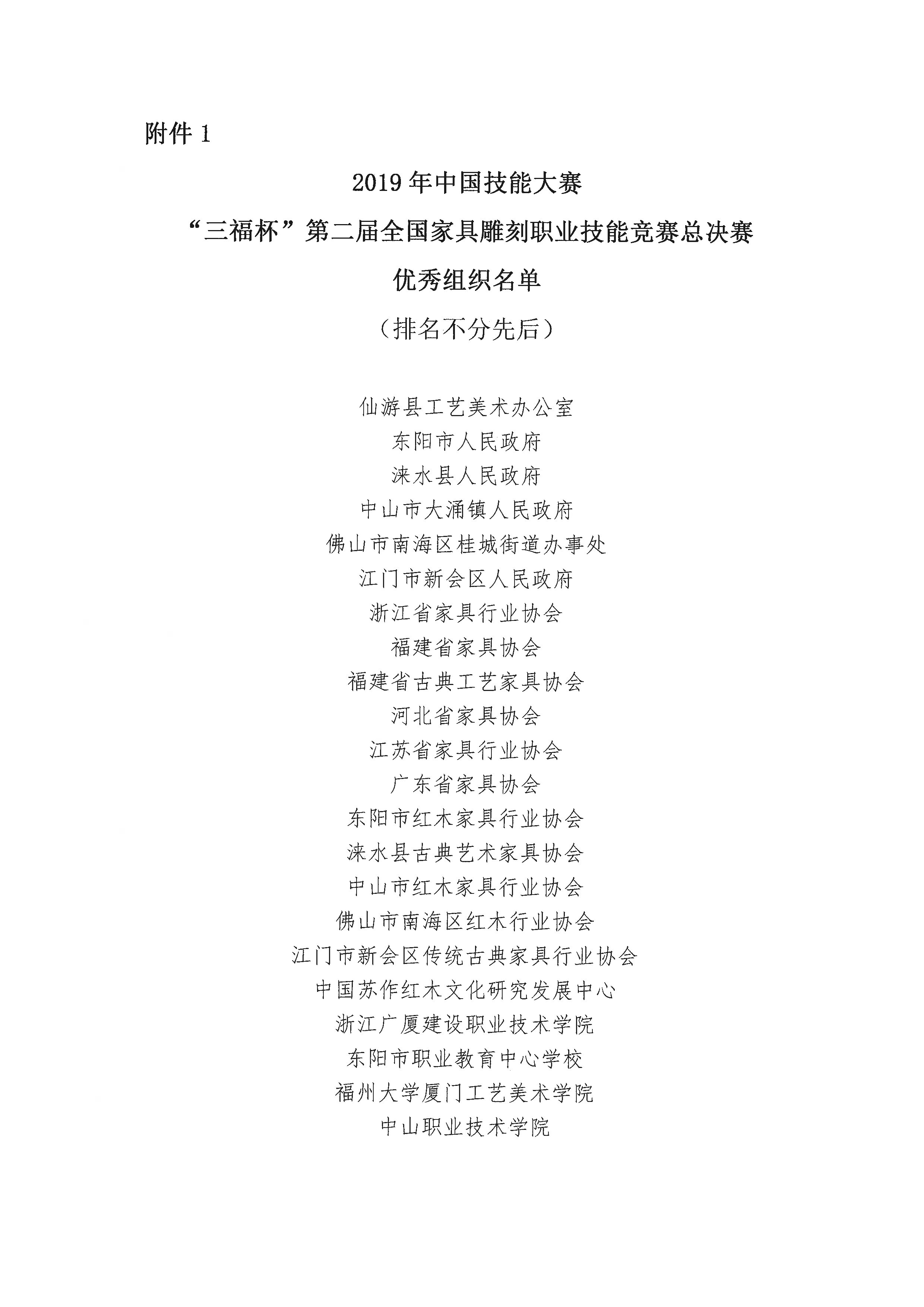 关于授予“2019年中国技能大赛——‘三福杯’第二届全国家具雕刻职业技能竞赛总决赛优秀组织、优秀个人”称号的决定