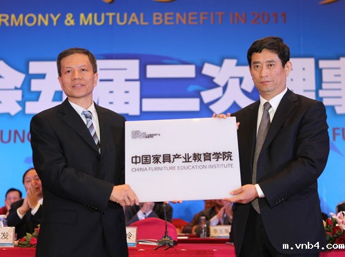 朱长岭理事长(右)为“中国家具产业教育学院”授牌