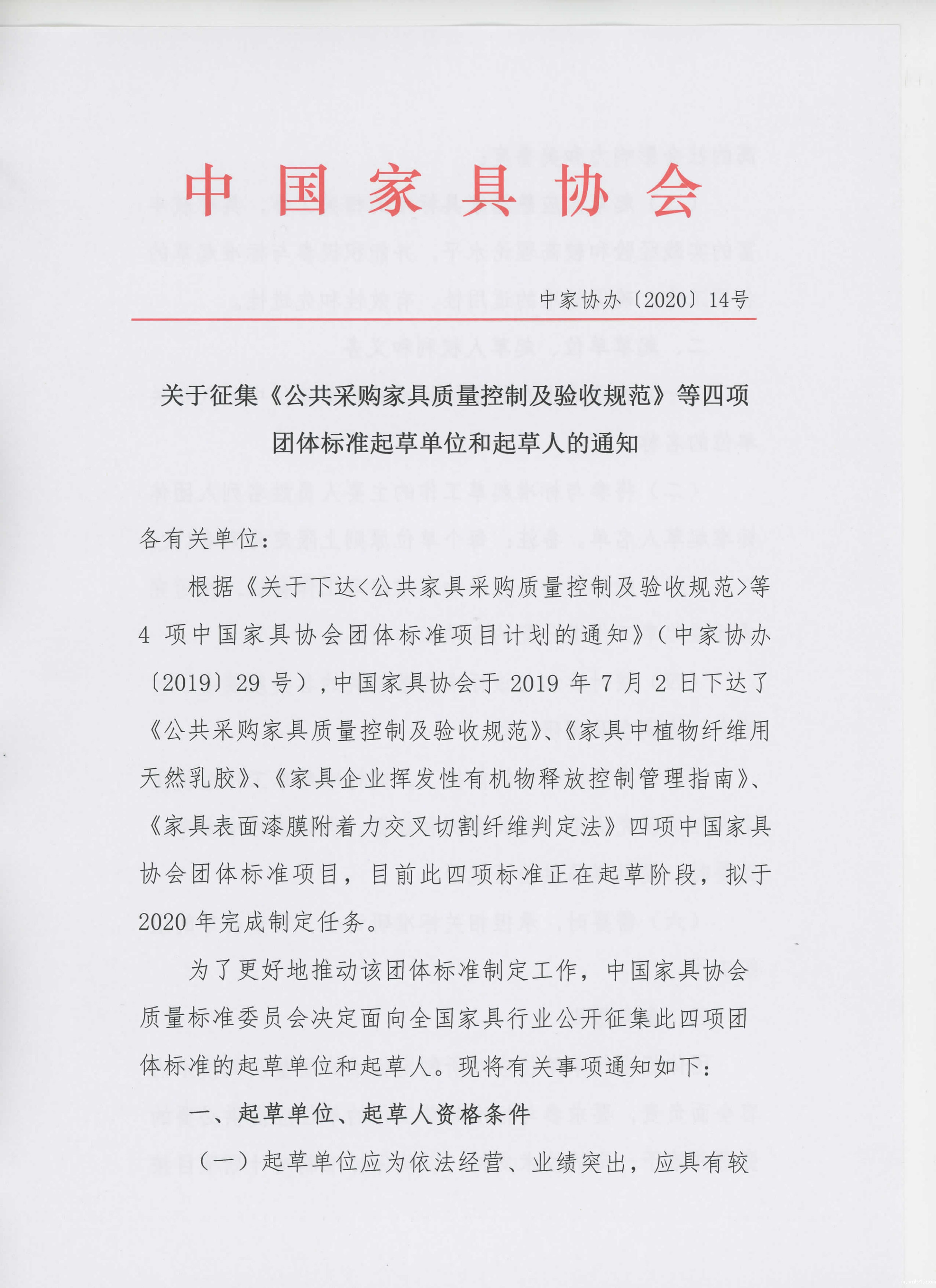 关于征集《公共采购家具质量控制及验收规范》等四项