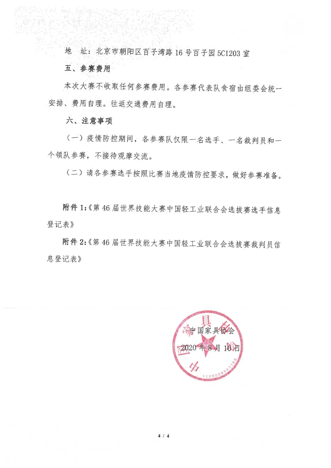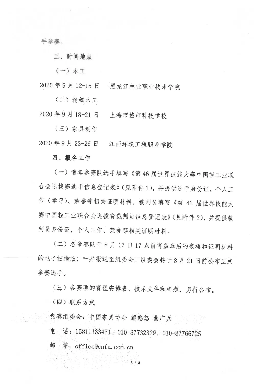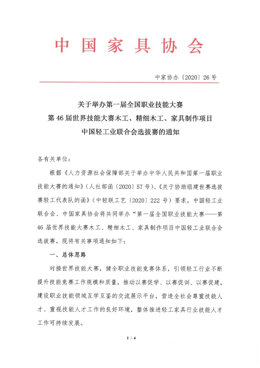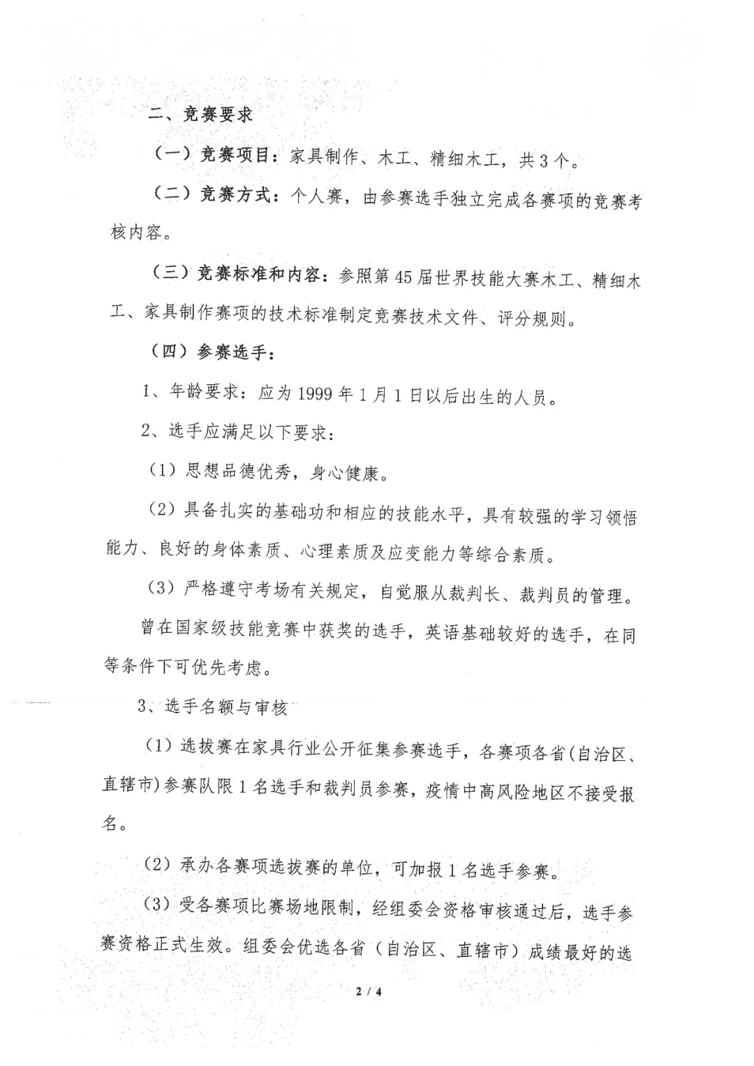 关于举办第一届全国职业技能大赛——第46届世界技能大赛木工、精细木工、家具制作项目中国轻工业联合会选拔赛的通知