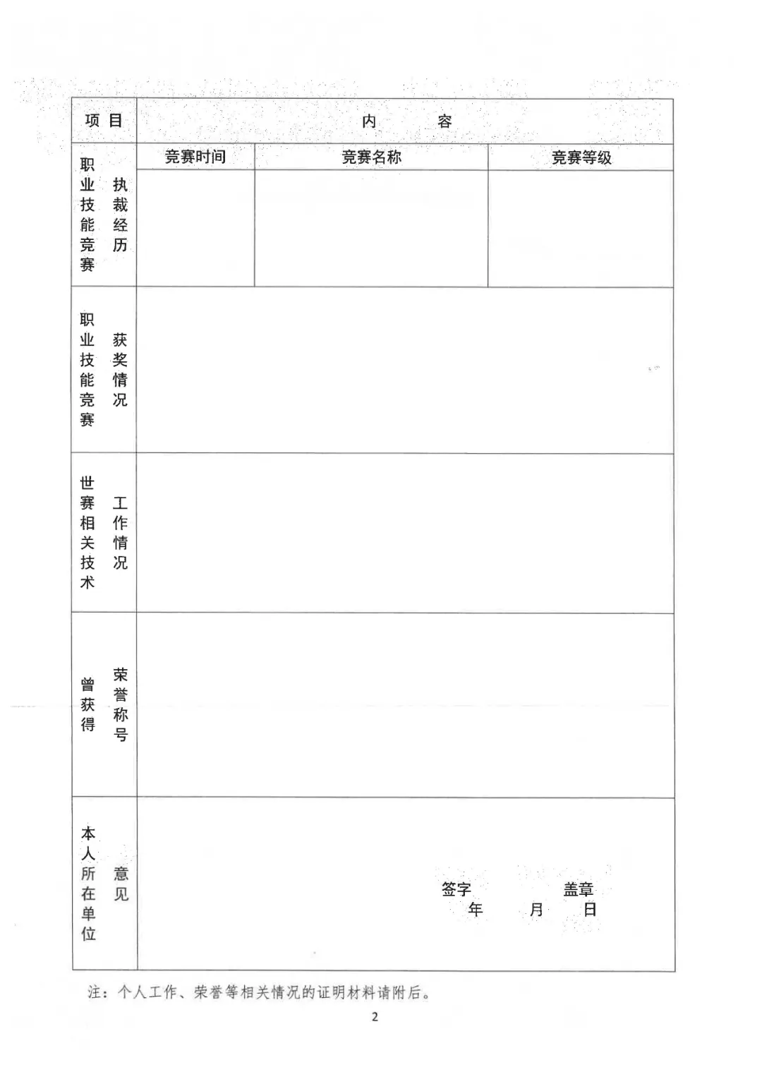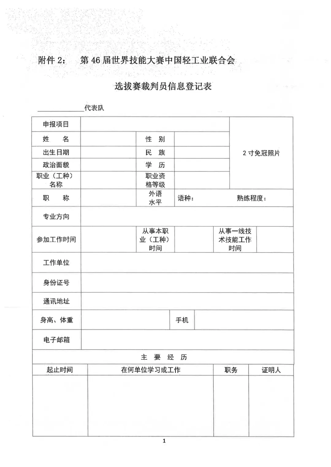 附件2:第46届世界技能大赛中国轻工业联合会选拔赛裁判员信息登记表