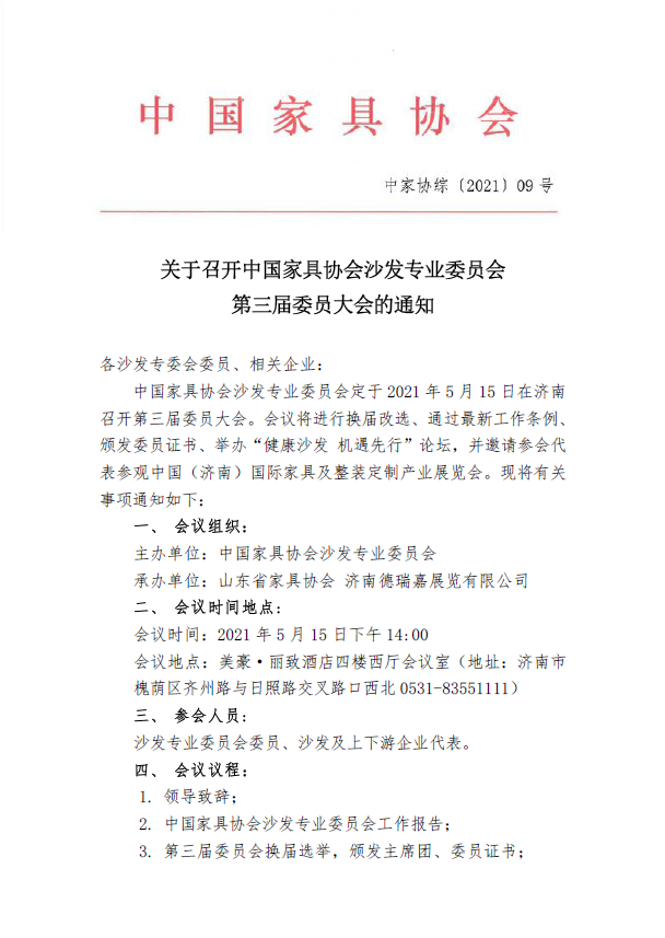 关于召开优米app有哪些沙发专业委员会第三届委员大会的通知