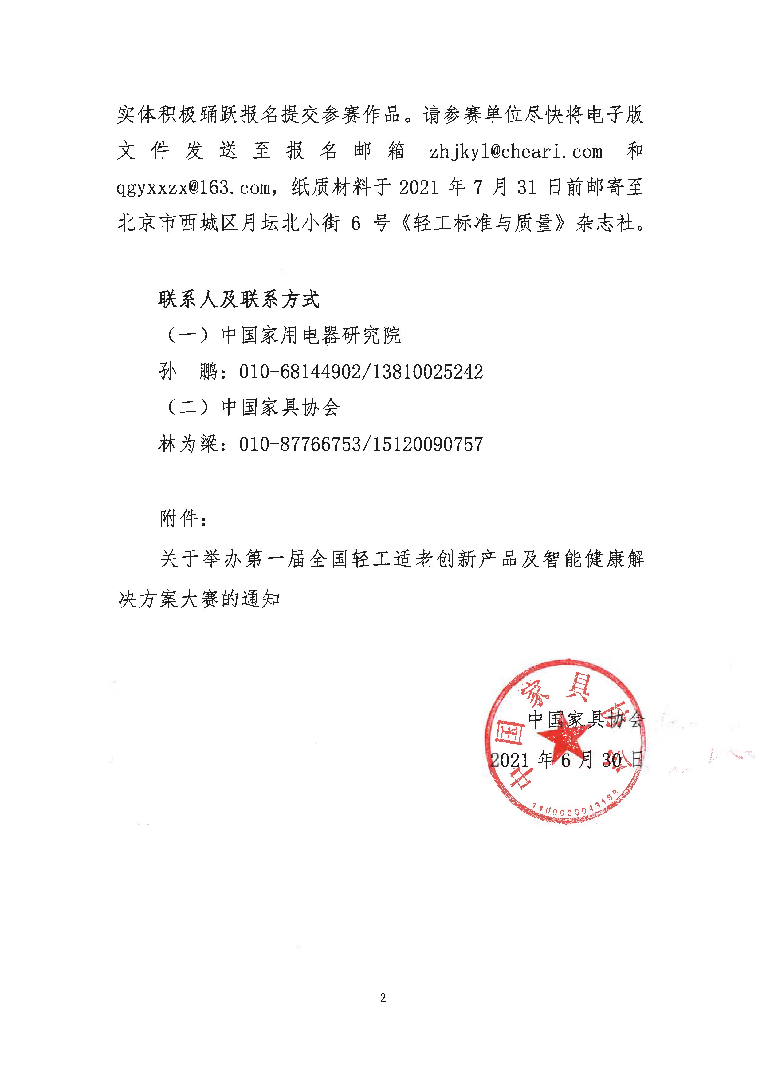 关于组织参加第一届全国轻工适老创新产品及智能健康解决方案大赛的通知