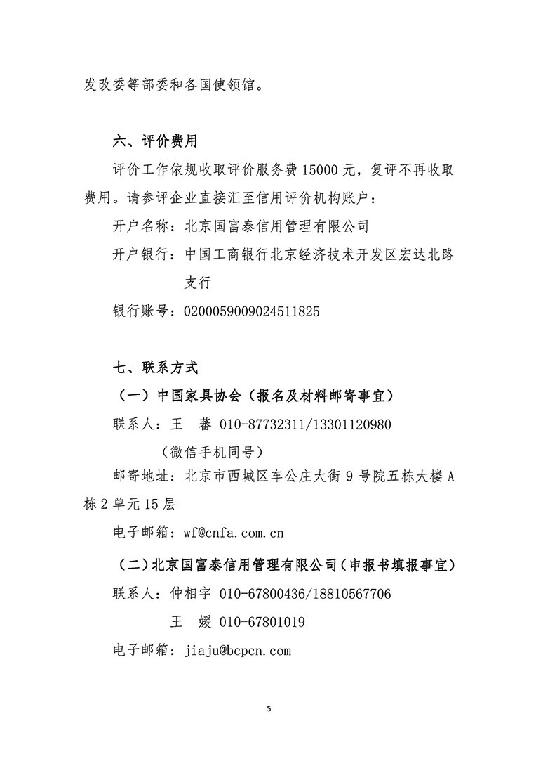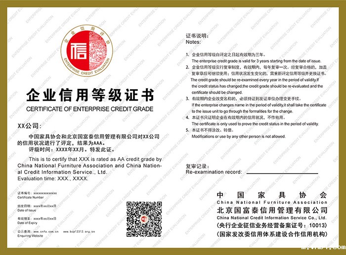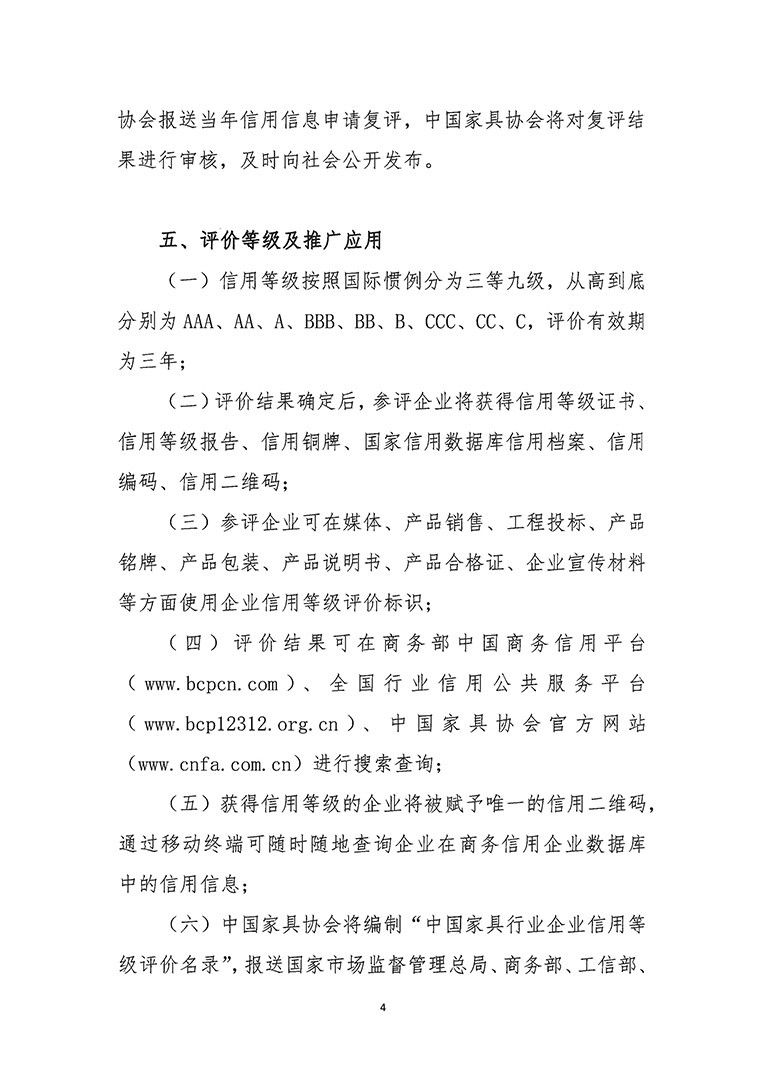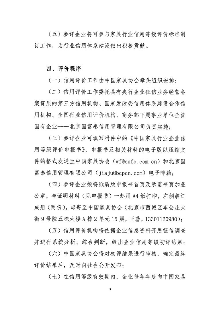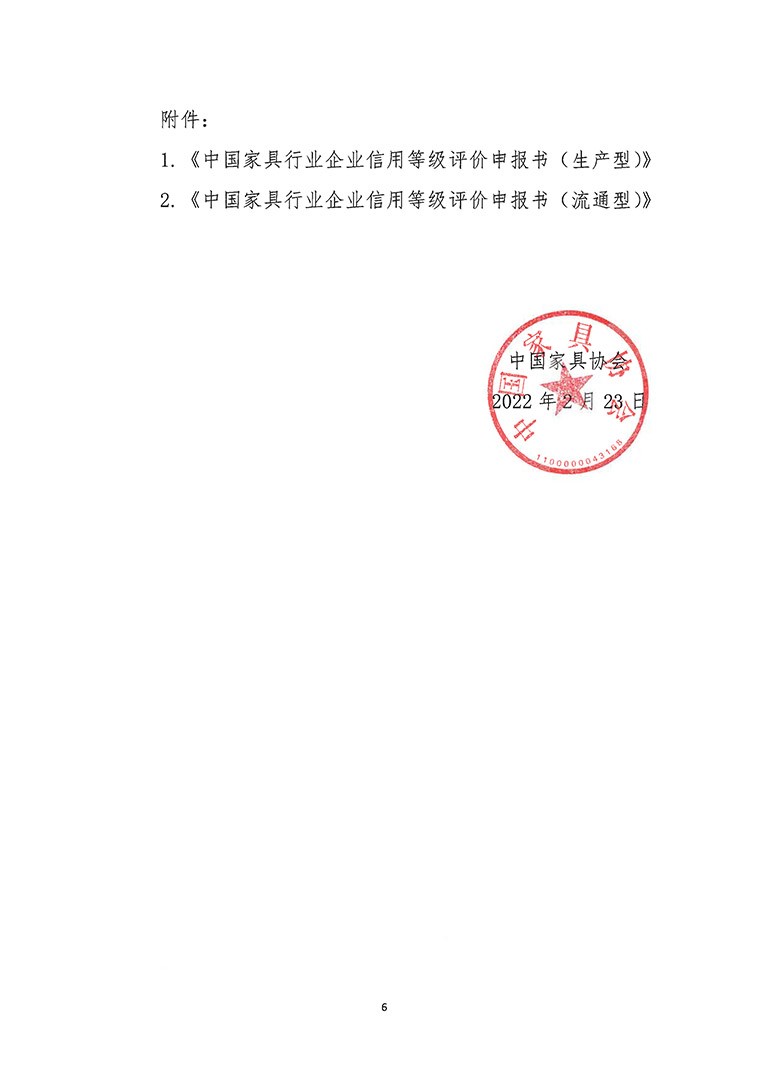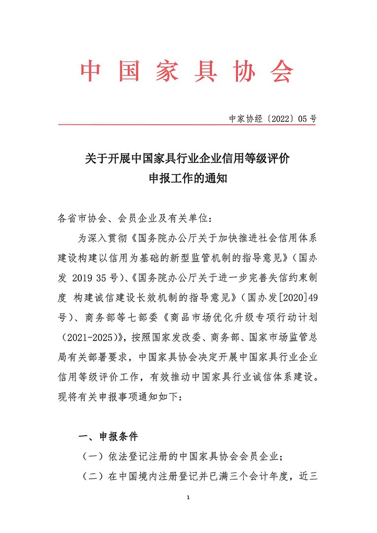 关于开展中国家具行业企业信用等级评价申报工作的通知
