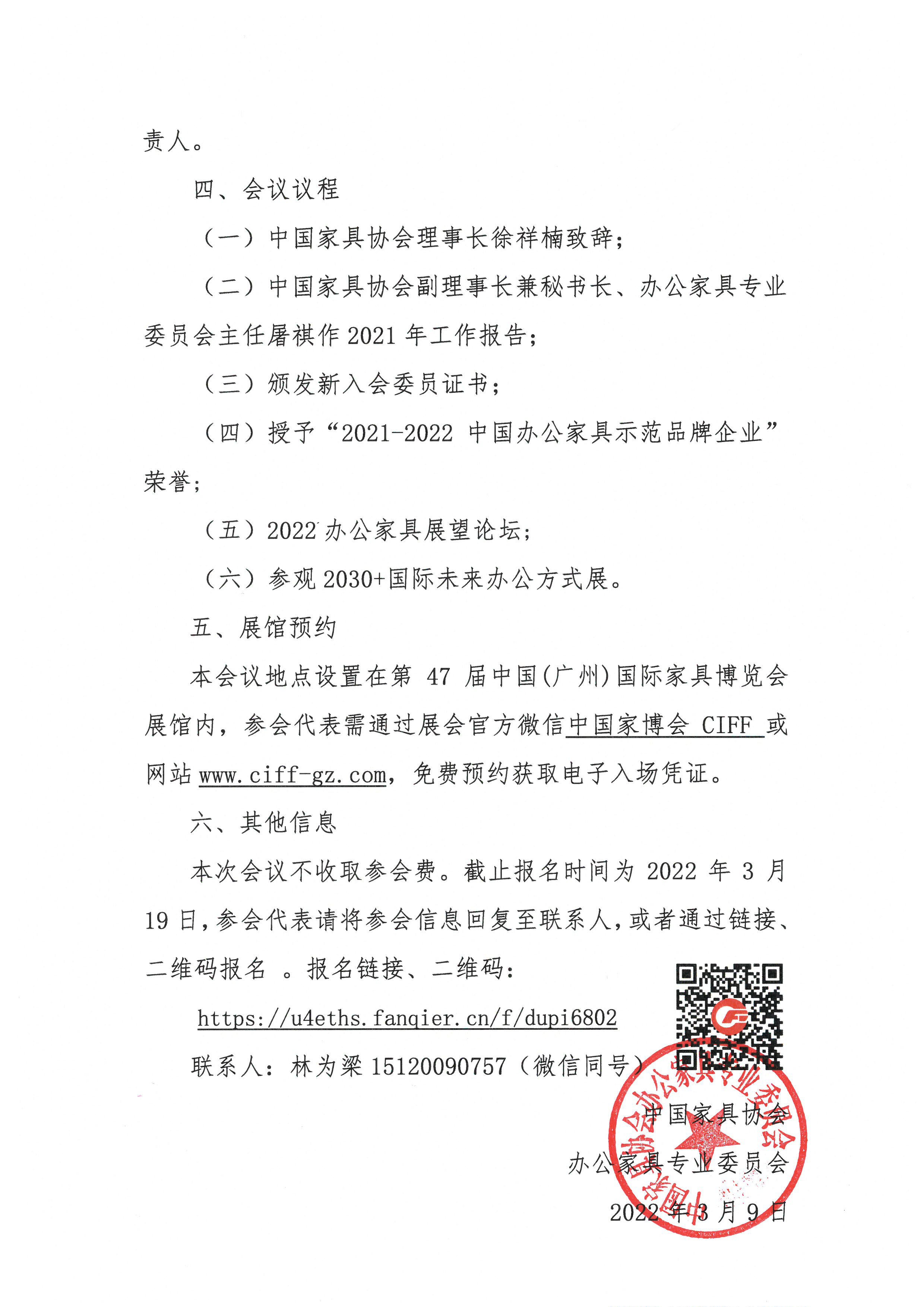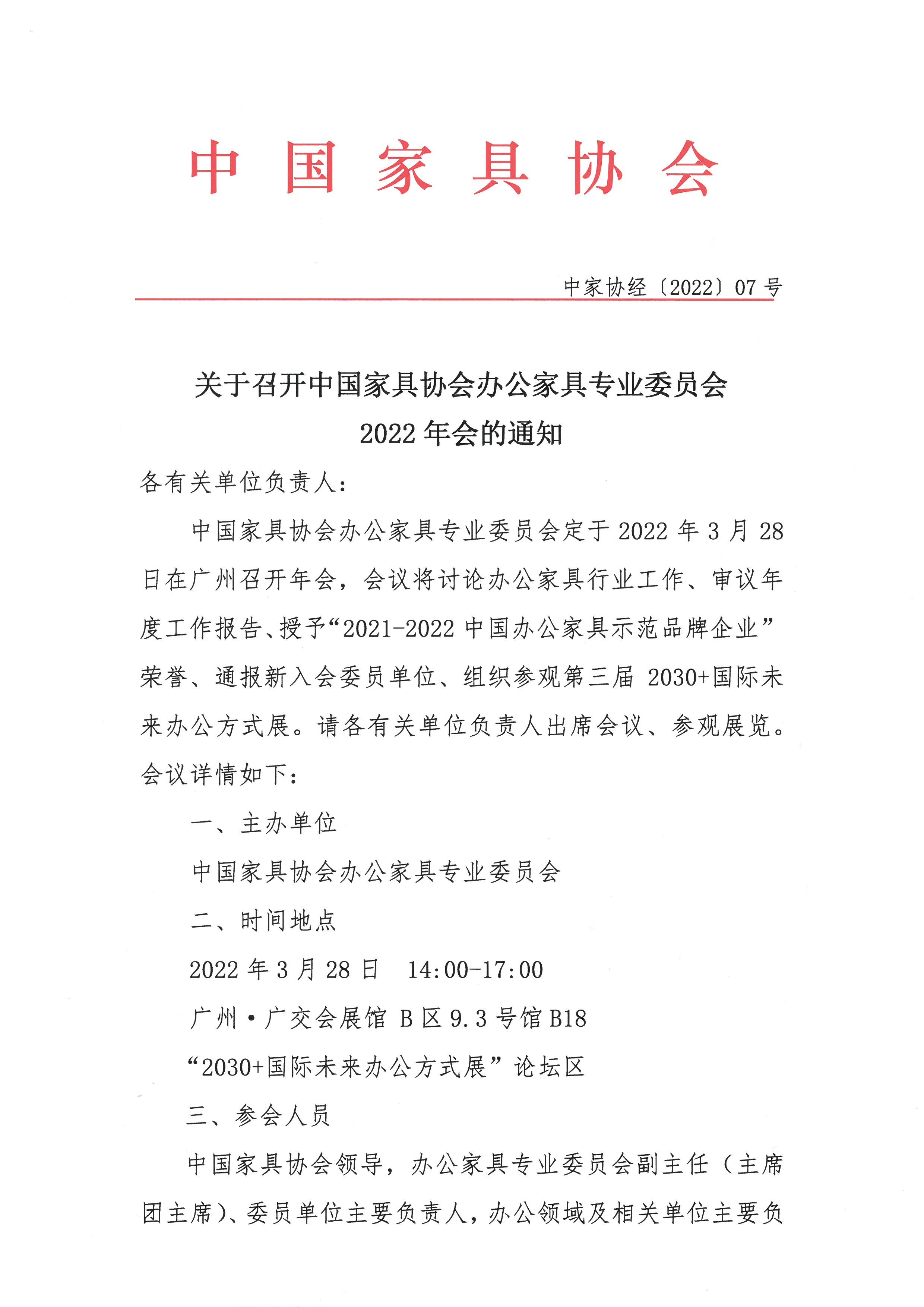 关于召开优米app有哪些办公家具专业委员会2022年会的通知