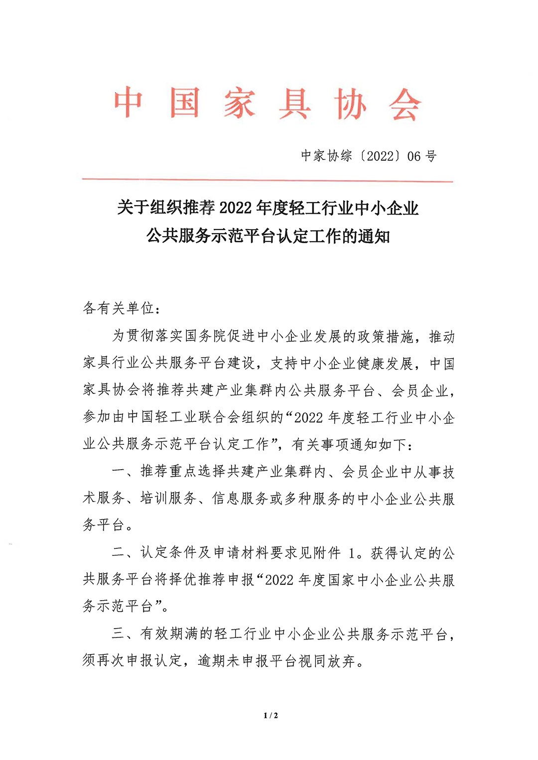 关于组织推荐2022年度轻工行业中小企业公共服务示范平台认定工作的通知