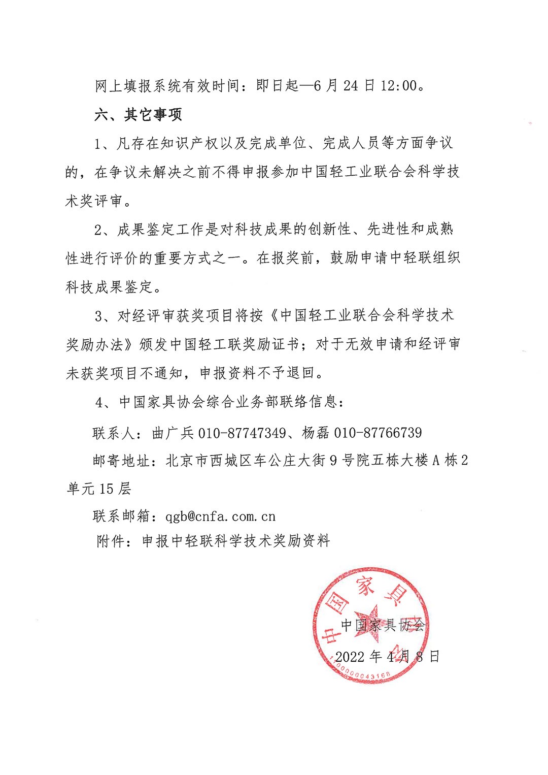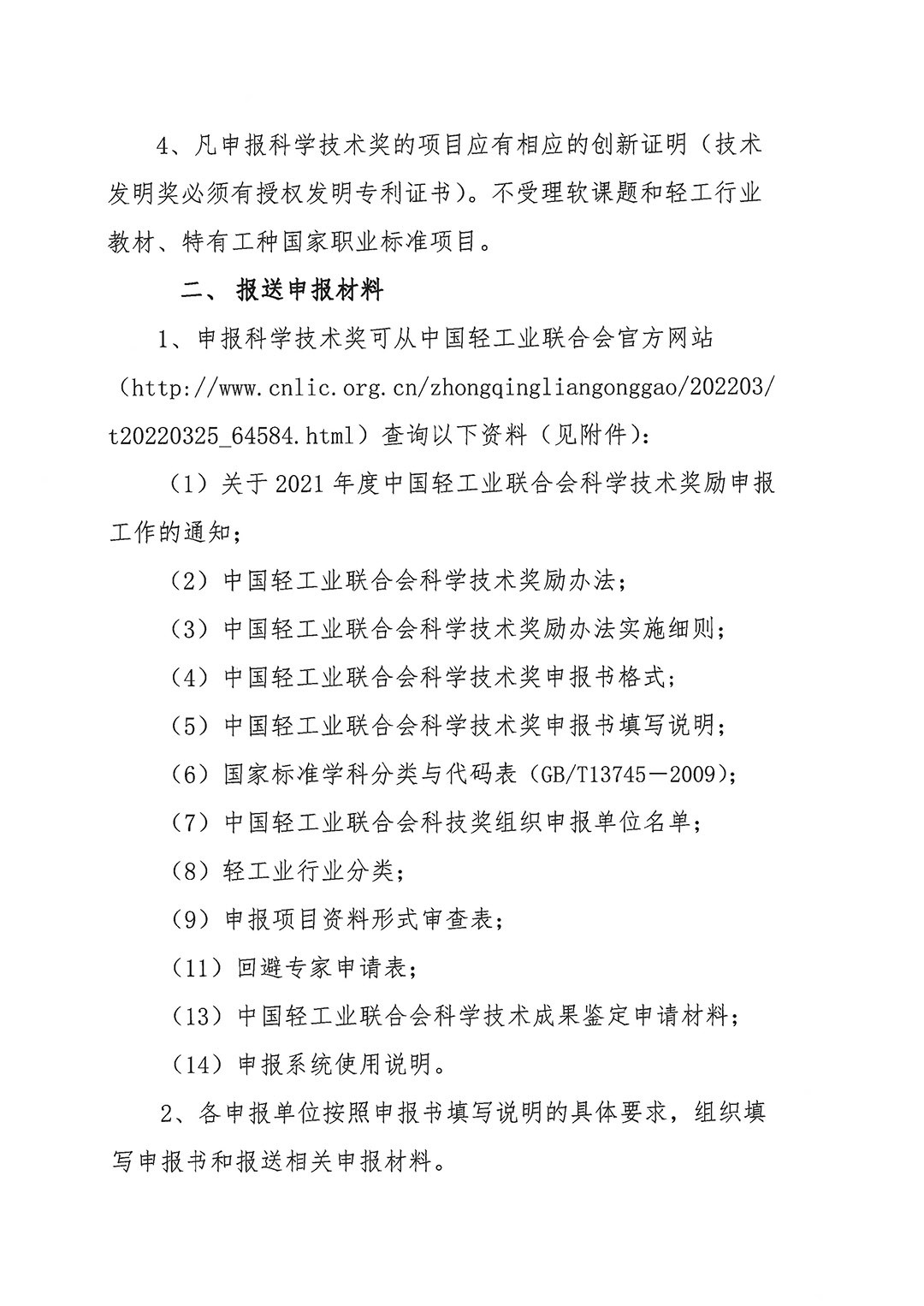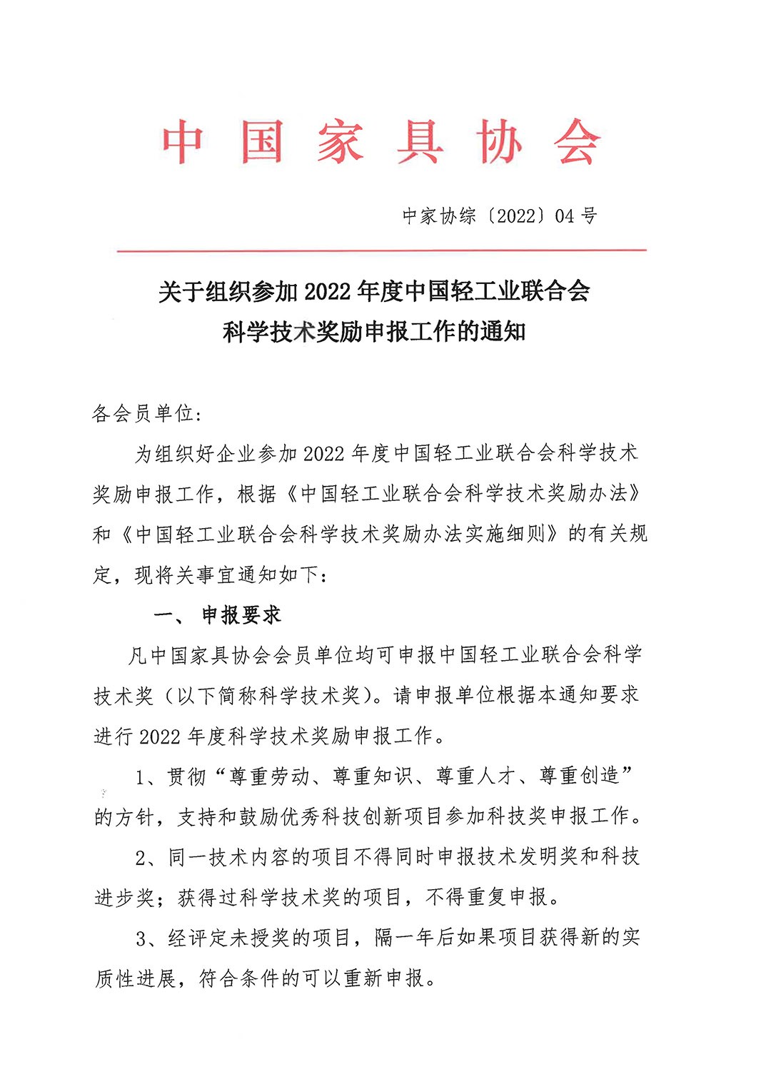 关于组织参加2022年度中国轻工业联合会科学技术奖励申报工作的通知