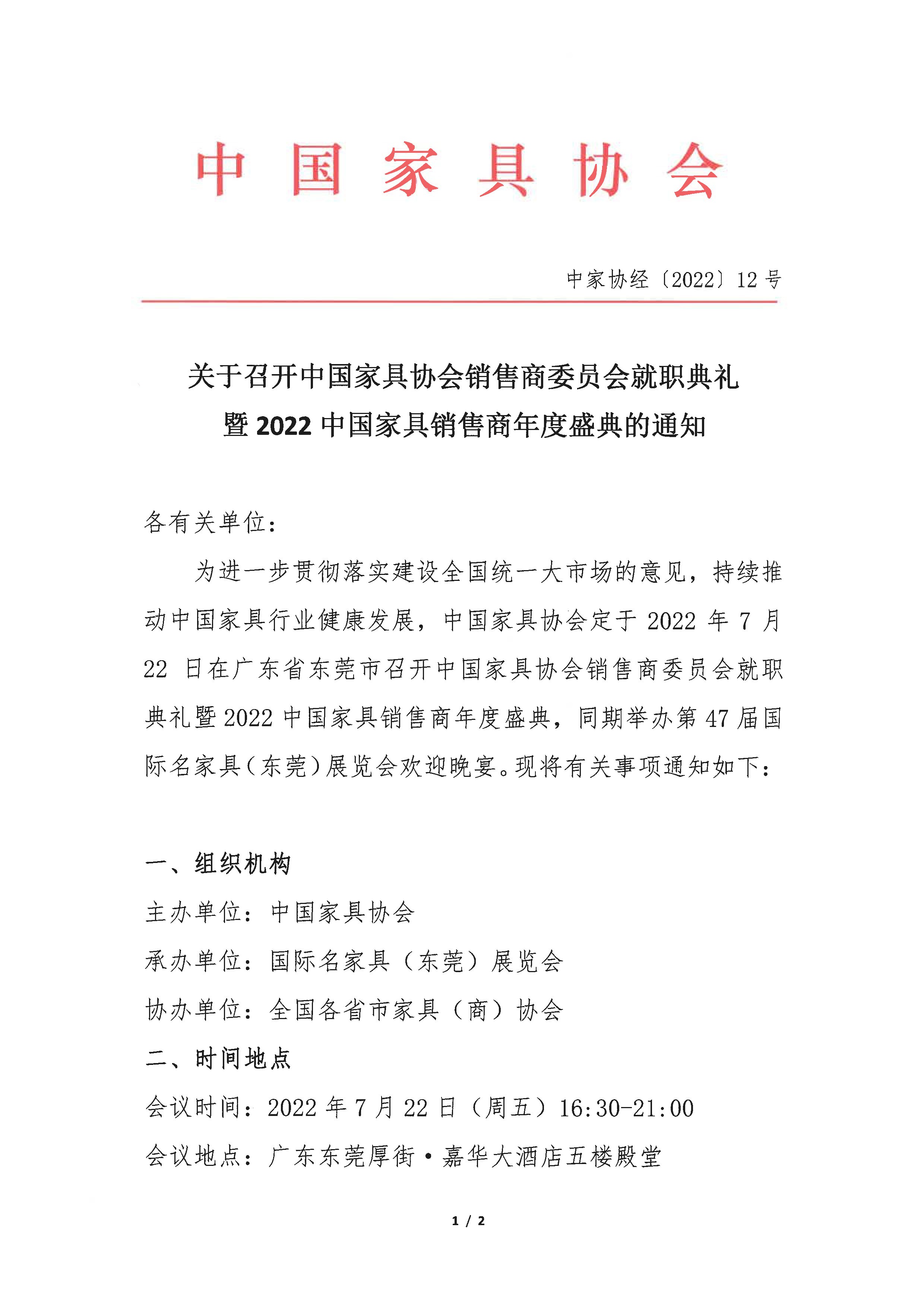 关于召开优米app有哪些销售商委员会就职典礼暨2022中国家具销售商年度盛典的通知