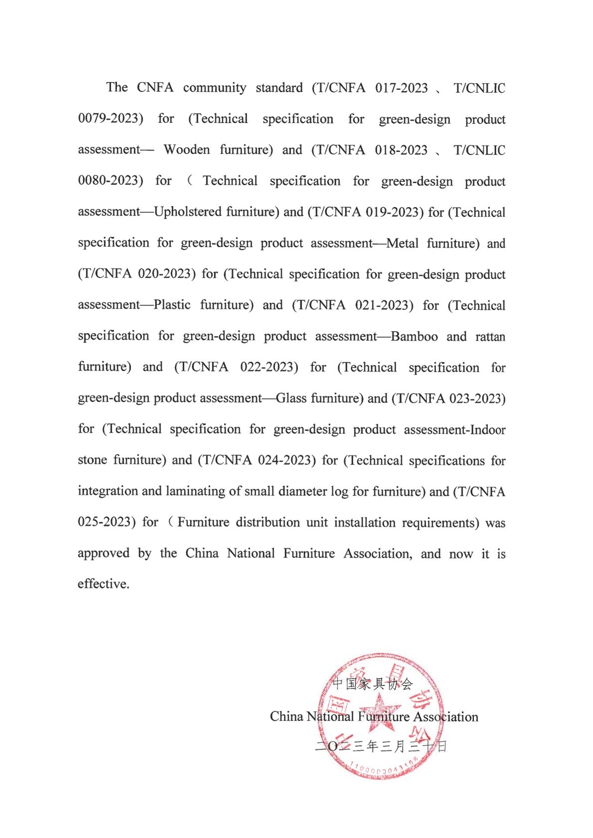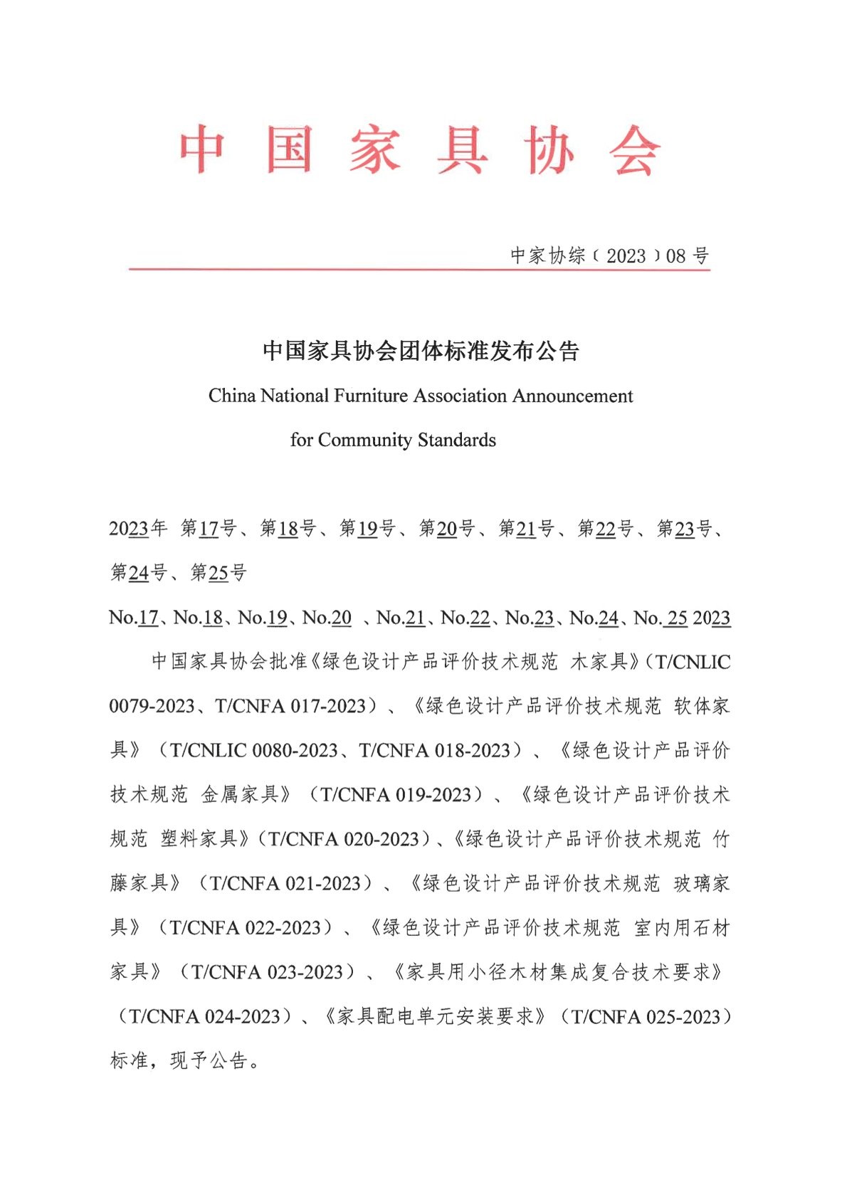 关于批准发布《绿色设计产品评价技术规范 木家具》等9项团体标准的公告