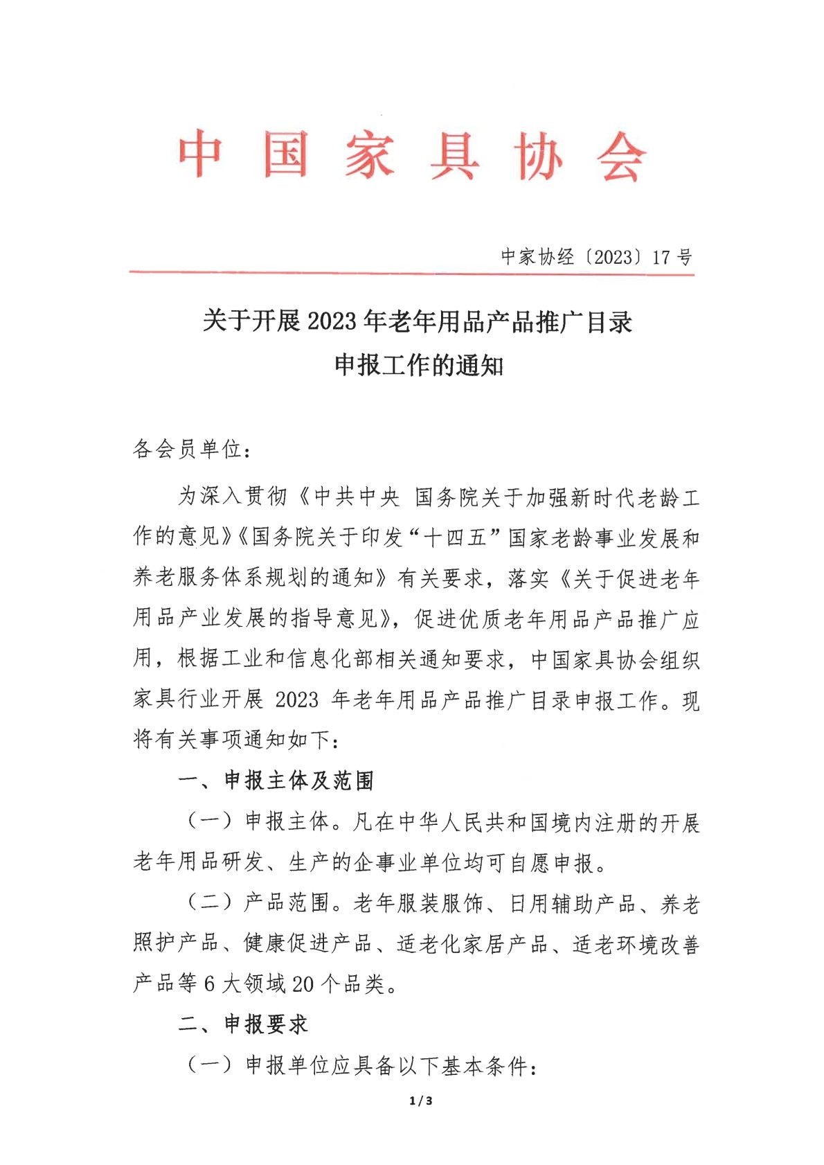 关于开展2023年老年用品产品推广目录申报工作的通知