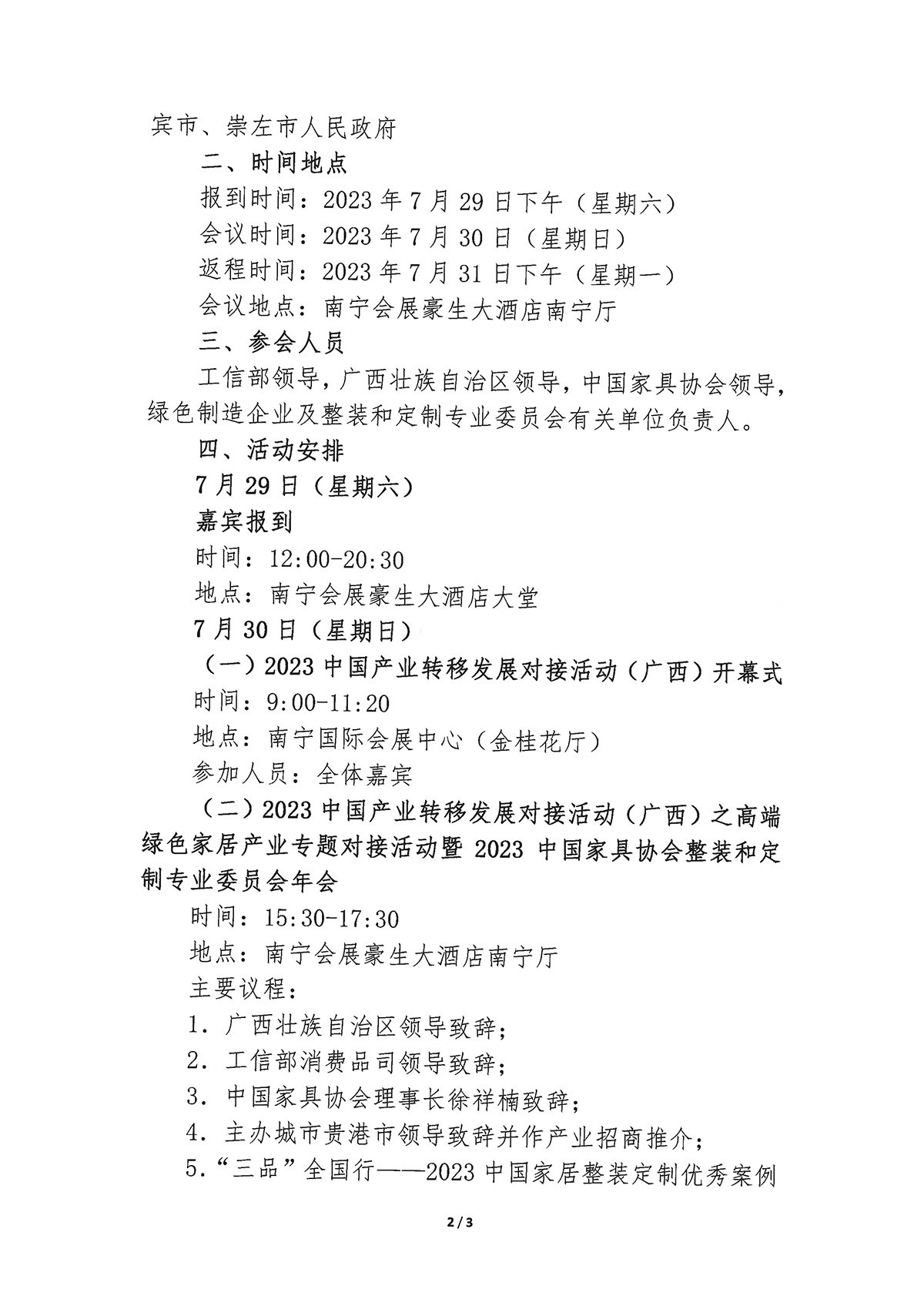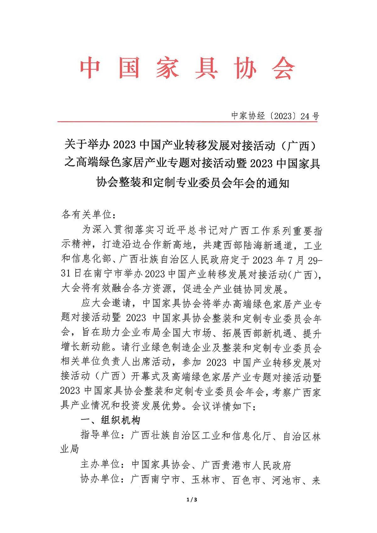 关于举办2023中国产业转移发展对接活动(广西)之高端绿色家具产业专题对接活动暨2023优米app有哪些整装和定制专业委员会年会的通知