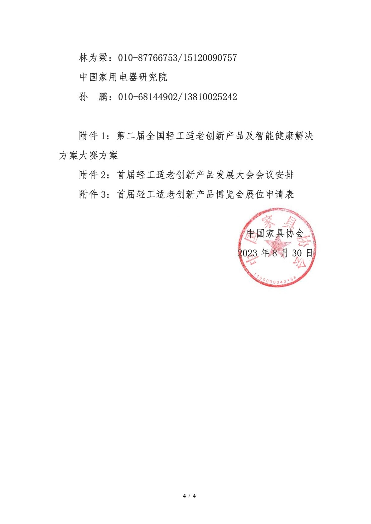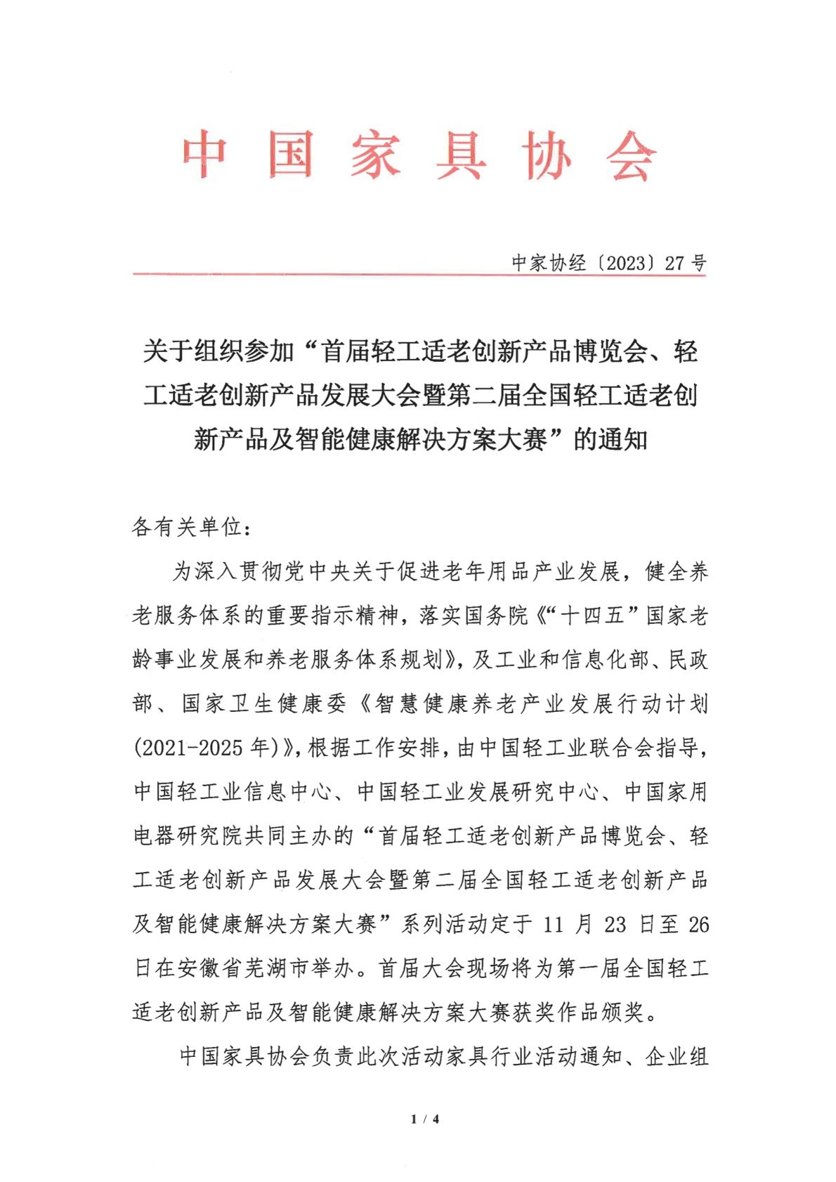 关于组织参加“首届轻工适老创新产品博览会、轻工适老创新产品发展大会暨第二届全国轻工适老创新产品及智能健康解决方案大赛”的通知