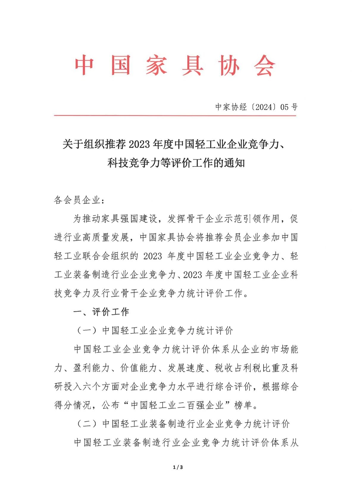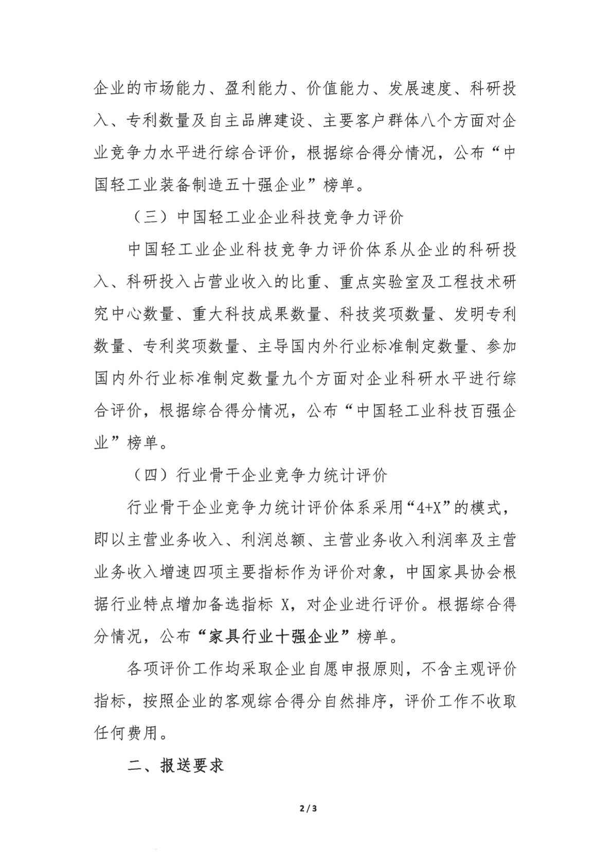 关于组织推荐2023年度中国轻工业企业竞争力、科技竞争力等评价工作的通知
