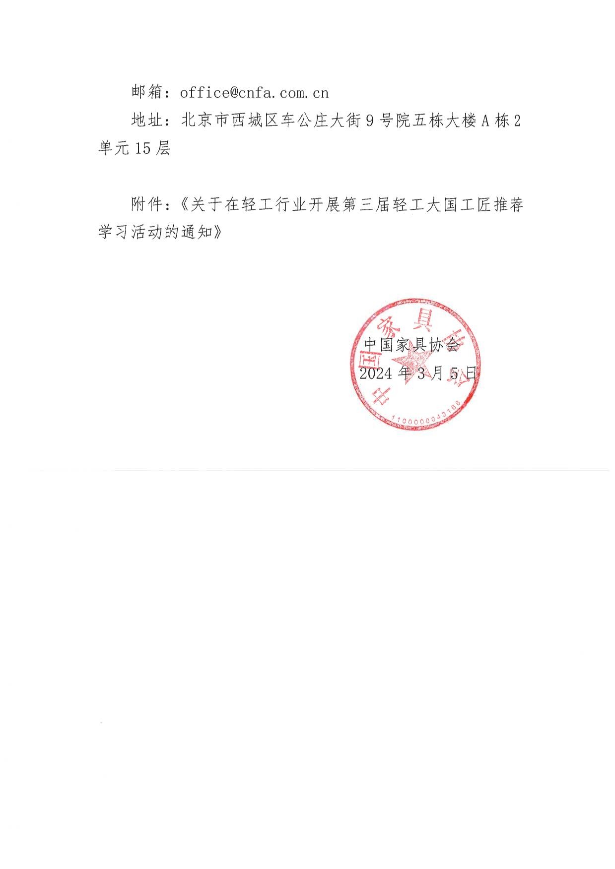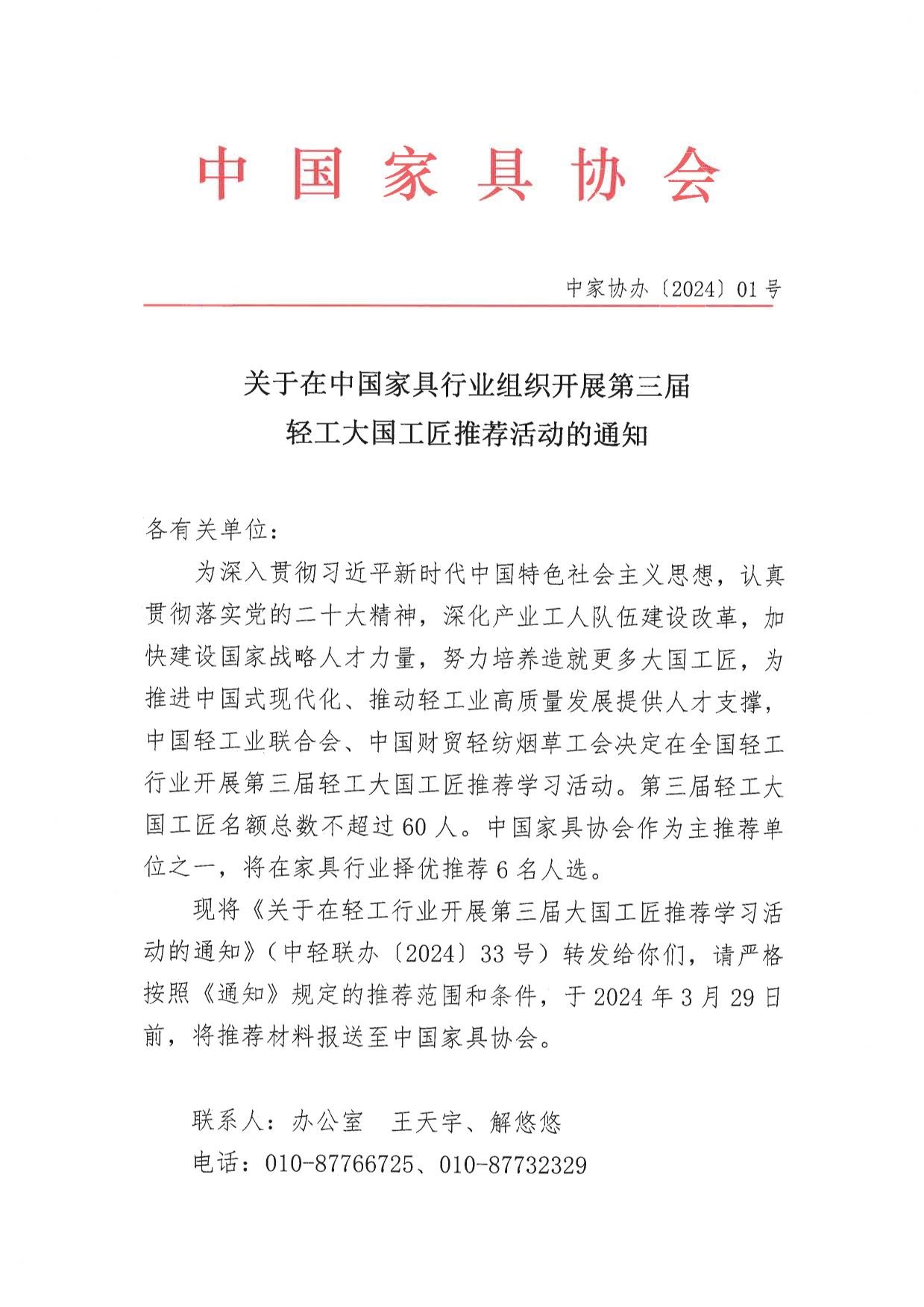 关于在中国家具行业组织开展第三届轻工大国工匠推荐活动的通知