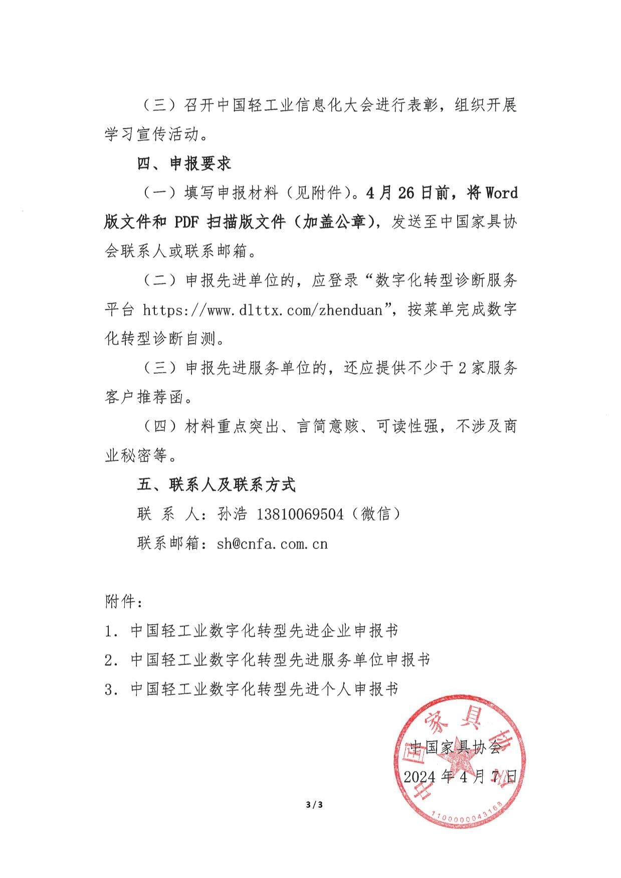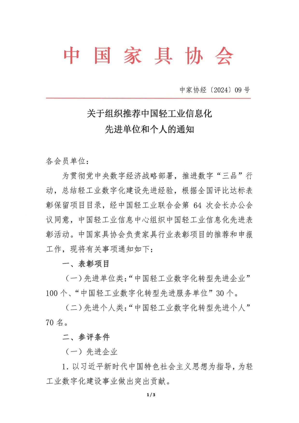 关于组织推荐中国轻工业信息化先进单位和个人的通知