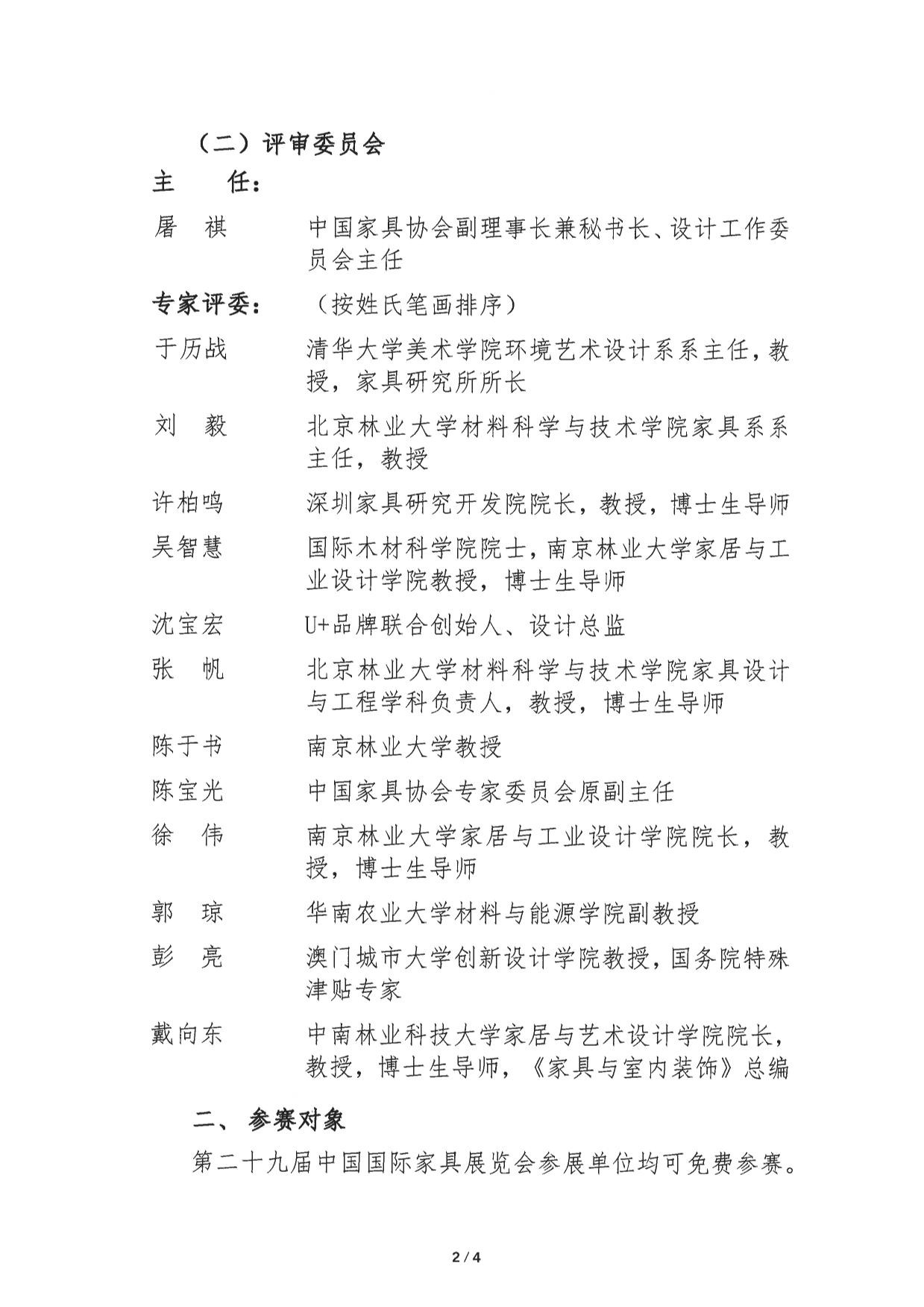 第二十九届中国国际家具展览会参展单位均可免费参赛。