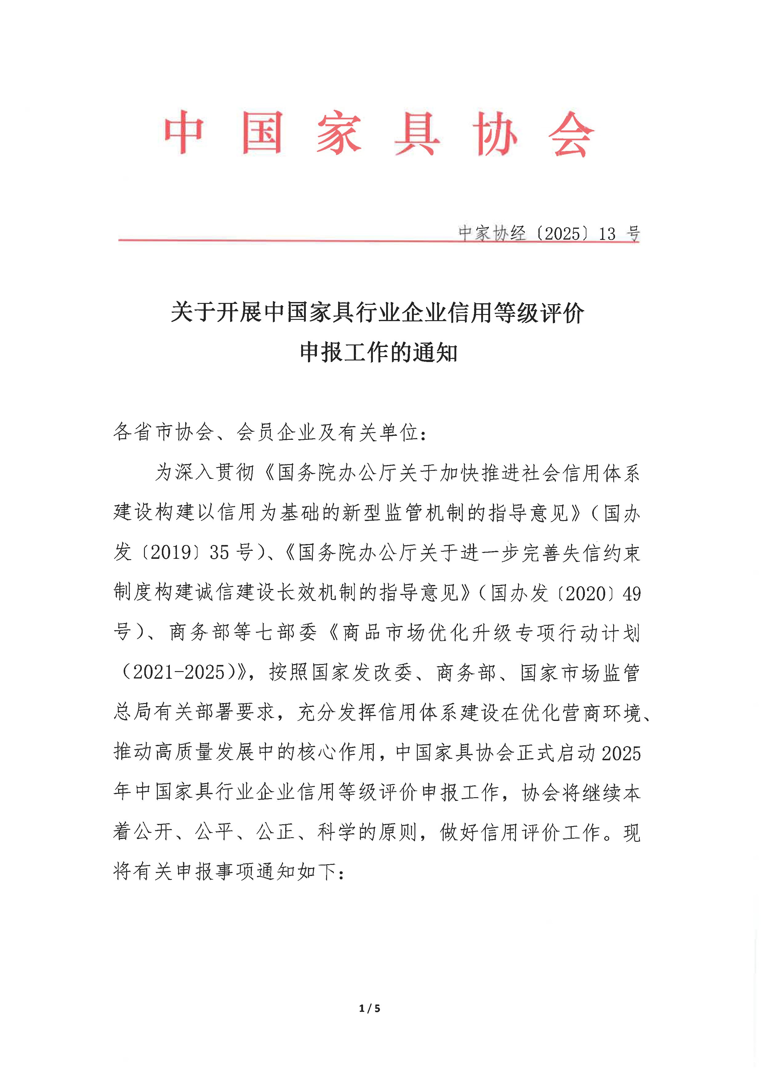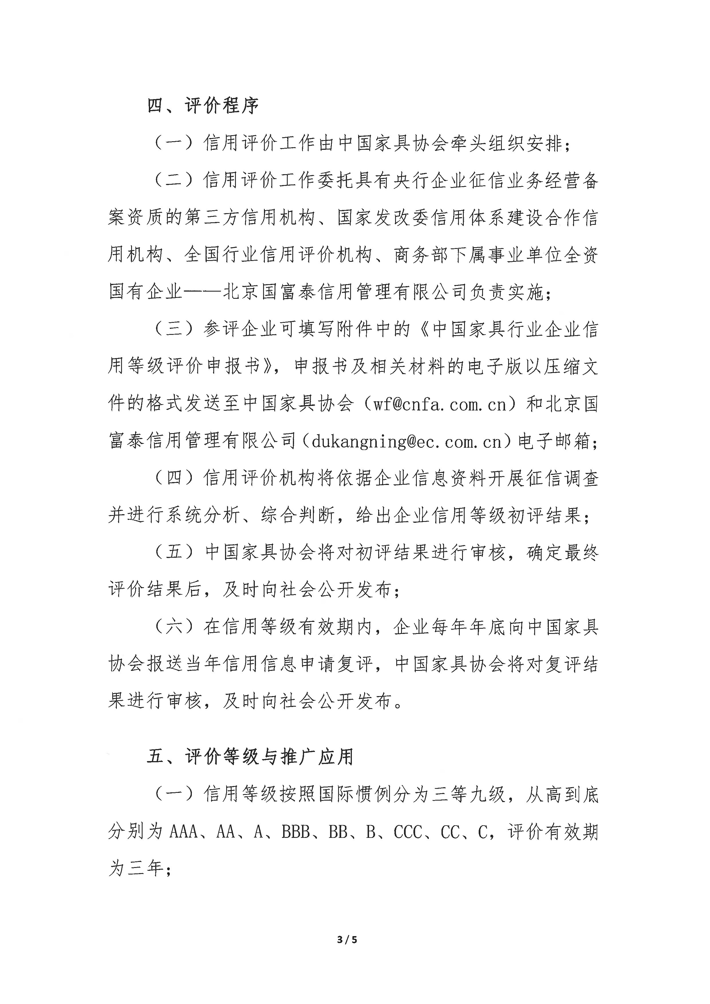 关于开展中国家具行业企业信用等级评价申报工作的通知