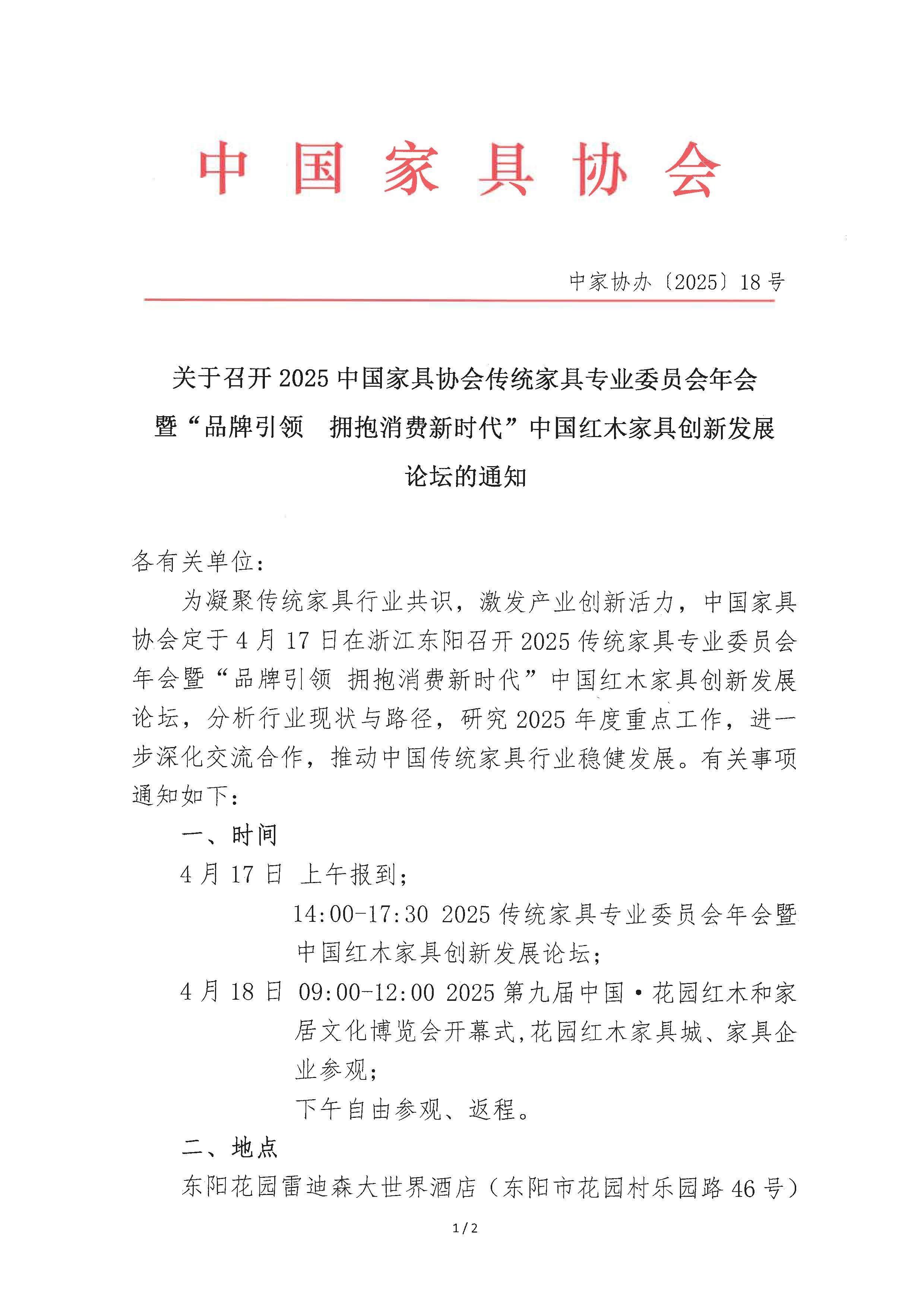 关于召开2025优米app有哪些传统家具专业委员会年会暨“品牌引领 拥抱消费新时代”中国红木家具创新发展论坛的通知