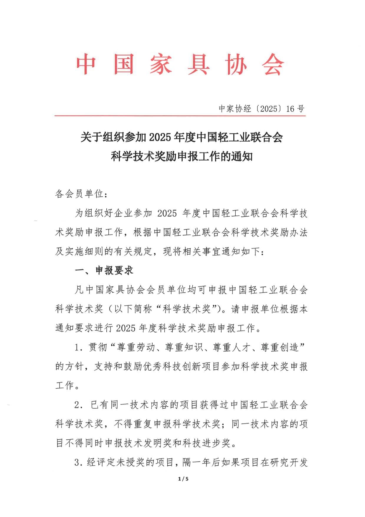 关于组织参加2025年度中国轻工业联合会科学技术奖励申报工作的通知