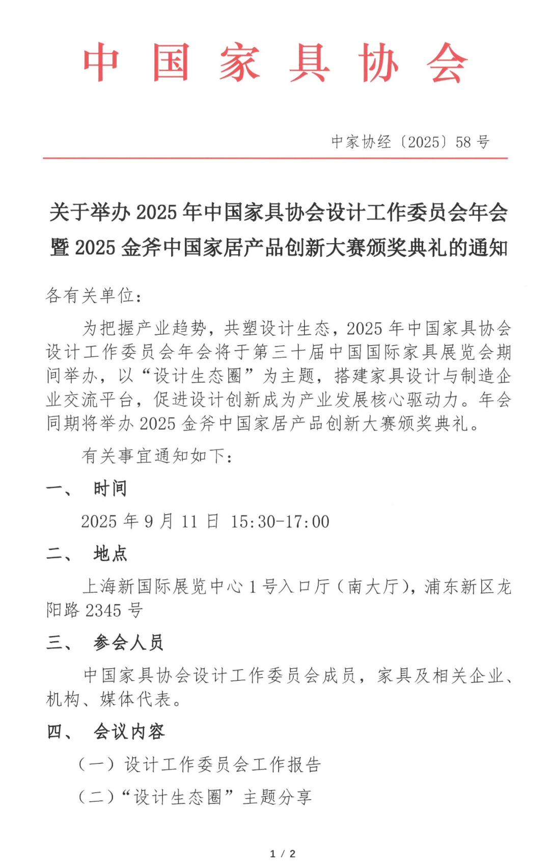 关于举办2025年优米app有哪些设计工作委员会年会暨2025金斧中国家居产品创新大赛颁奖典礼的通知