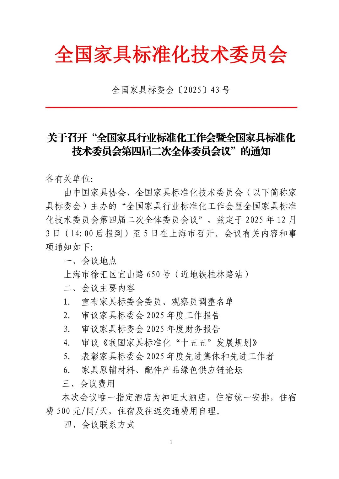 关于召开“全国家具行业标准化工作会暨全国家具标准化技术委员会第四届二次全体委员会议”的通知