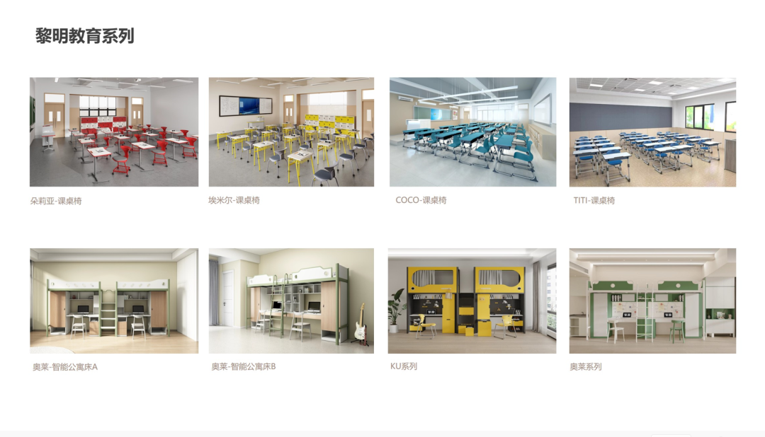 通过多样的设计风格与功能组合,覆盖教育场景中?“教”(教室课桌椅)与?“住”(宿舍公寓床)的核心家具需求。