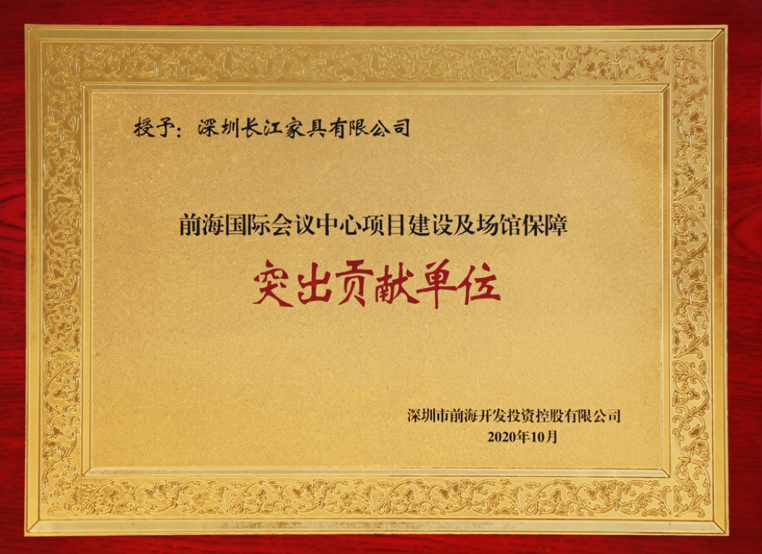 2020年,“深圳经济特区建立40周年庆祝大会”中所用的主席台家具由长江家具提供,长江家具被评为“突出贡献单位”。