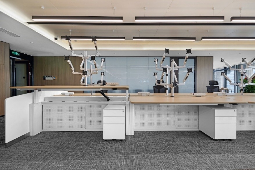 在专业金融交易场景中,长江家具推出的金融交易智能升降桌,通过高度定制化的配置直面证券、银行等高强度、高敏感环境的核心需求。产品集成多屏支架与集中电控系统,其技术难点在于如何确保多机构、多设备在频繁升降过程中的线路稳定性与信号零干扰;同时,为实现交易期间所需的极致静音,其在电机选型、结构传动与减震设计方面均需突破常规办公家具的标准。正是通过对这些关键难点的攻克,该产品才能够保障交易员在长时间、高专注度操作下的效率与舒适,从而成为金融行业办公环境升级的标杆之选,以专业性能与可靠表现助力机构提升综合运营效能。