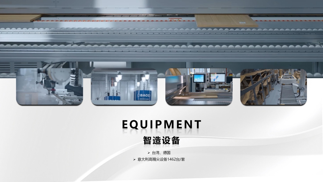 企业拥有占地200余亩的现代化生产基地和4条工业3.0高定整装智能制造线,配备全球高精尖进口设备千余台套,是目前国内实木高定整装智能制造现代化程度领先的生产基地。我们高度重视知识产权保护,累计拥有外观设计专利2024件、实用新型专利44件、发明专利10件、注册商标238件及著作版权129件。