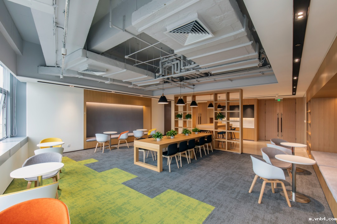 在工作空间选用适宜的色彩以提高空间宜人性以及员工表现力。比如工作区域保持中性色,可以促进员工集中注意力;蓝色使人镇定,适合员工沉思、冥想,摆脱外面的压力;黄色鼓励快乐、富有正面情绪,可以用在休闲区。