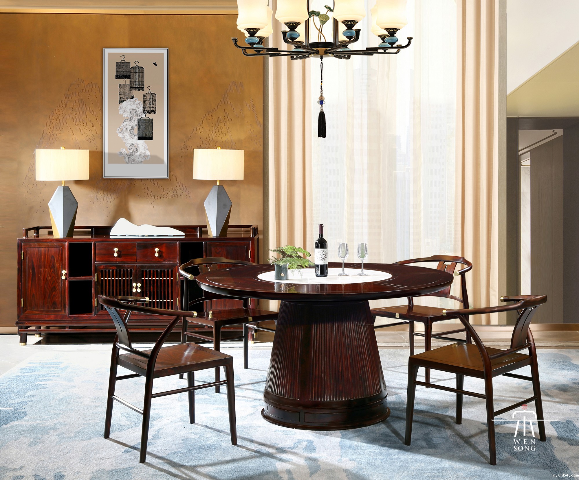 宋代是文人雅士之宴,酒是三杯两盏的淡,食是素雅的清淡,宋食的清淡,如宋时的青白瓷,典雅含蓄,自由一番气韵。坊间流传的“花开则赏之,花落则食之,勿使有丝毫损废”。餐椅优雅亭立,打破传统的形态,增添了一丝的柔情。餐芳露饮,生活之美兮。