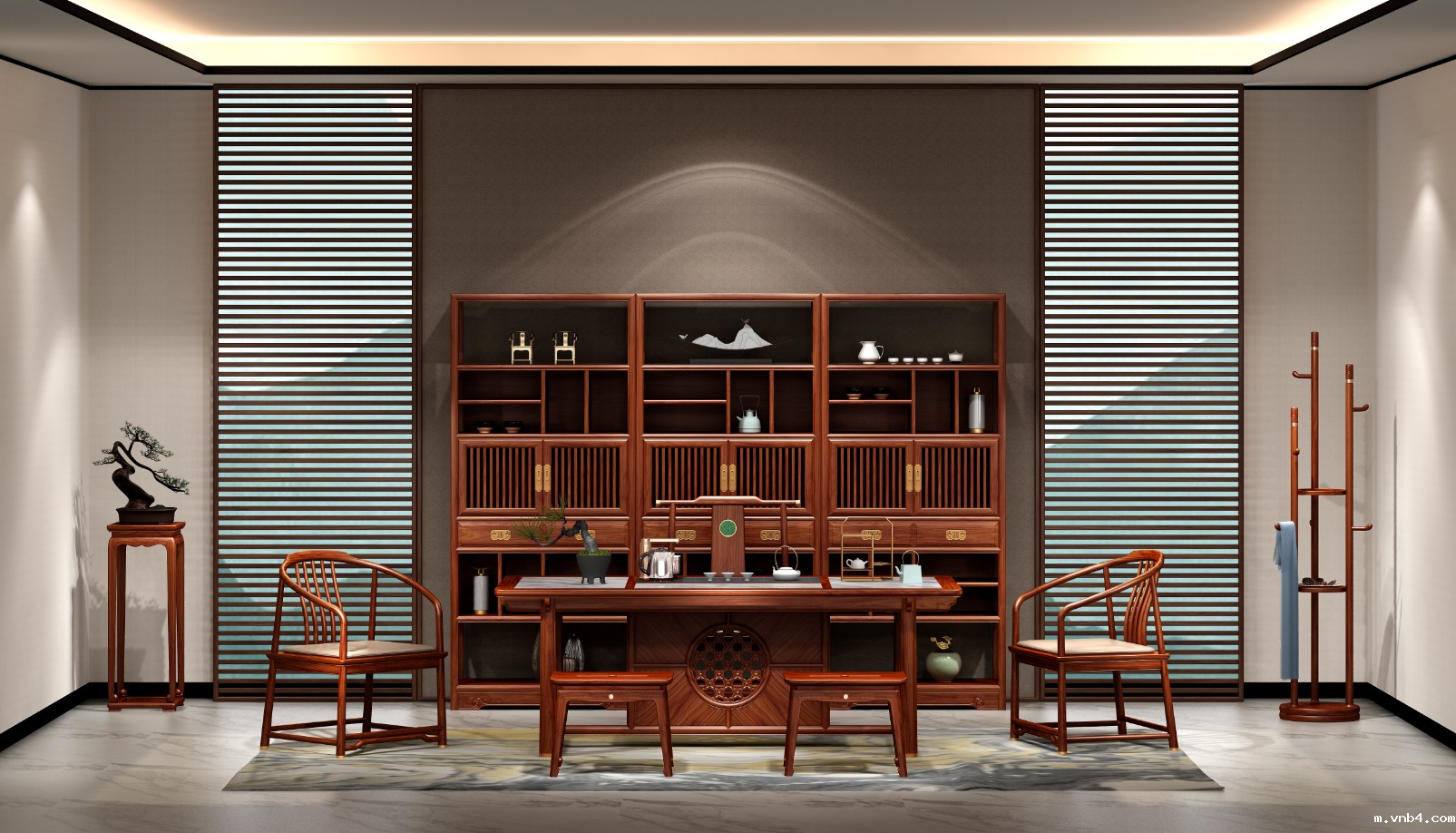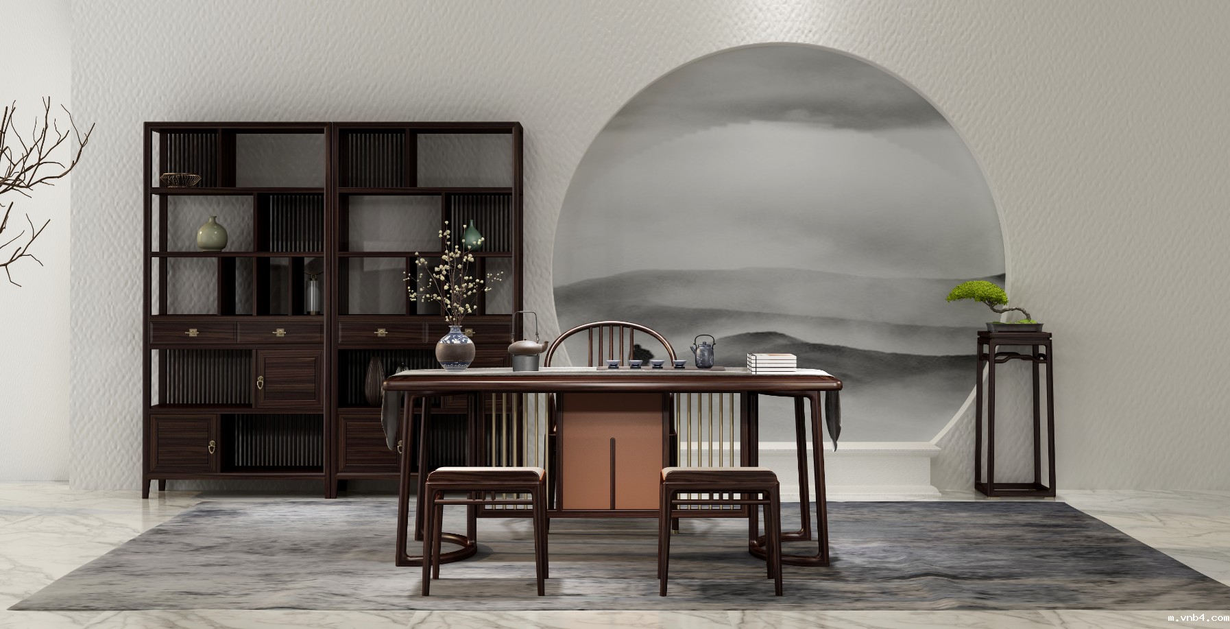 巧妙的结构形式赋予茶台有着中式建筑的气魄