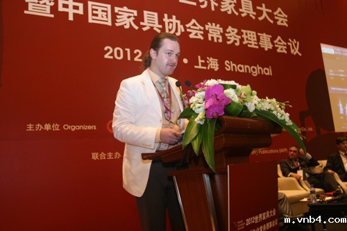 圆桌讨论后,意大利米兰国际工业研究中心的高级专家Mauro Spinelli做题为“全球家具行业现状及展望”的演讲。Mauro Spinelli根据世界家具生产、消费及贸易的趋势,对2013年的全球家具市场作了消费预期,介绍了家具行业中发达国家与新兴市场的关系,列举并分析了一些企业和消费者的案例。