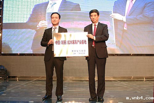 朱长岭理事长为中国(瑞丽)红木家具产业基地授牌。