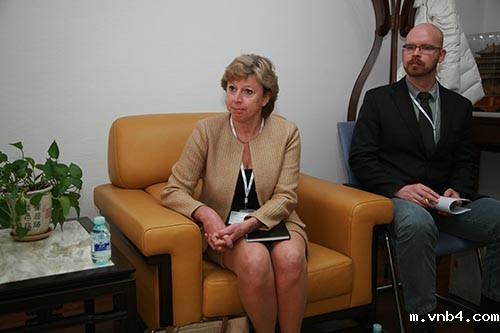 芬兰TAPIO森林发展中心项目经理莉莎·卡尔(LIISA KÄÄR)就竹子作为新的家具家装材料的发展前景,同朱长岭理事长交换了看法。
