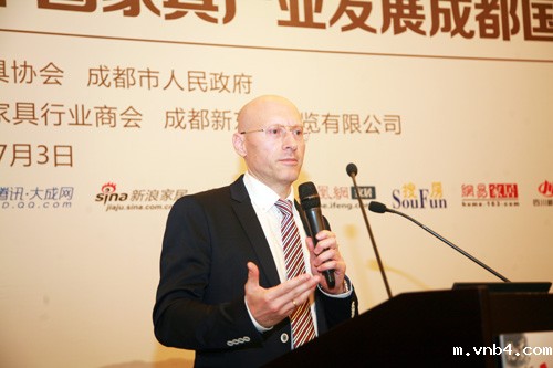 四川省家具行业商会会长王学茂主题演讲的内容为四川家具业未来的发展。他表示四川家具应调整、转变、转型、整合、提升,避免产能过剩,提升产品质量,希望四川从制造大省转向创造大省,从家具大省转向家具强省。