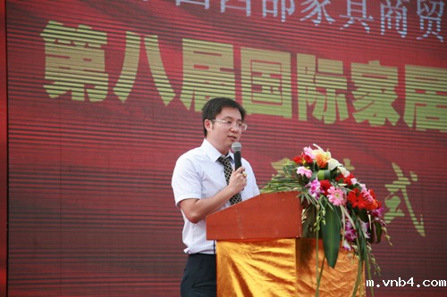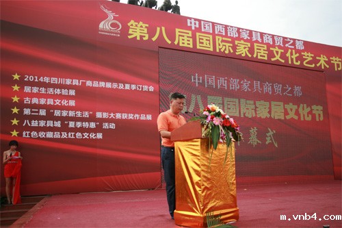 四川省家具行业商会常务副会长、成都八益家具集团副总裁何代强致开幕词,欢迎各界嘉宾和企业代表参加文化艺术节,并表示将致力把八益家具城打造为“永不落幕的家具展会”。