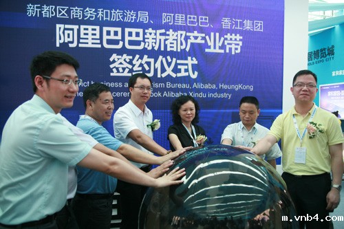 新都区商务和旅游局、阿里巴巴、香江集团就阿里巴巴新都产业带的合作项目完成三方签约和启动仪式。