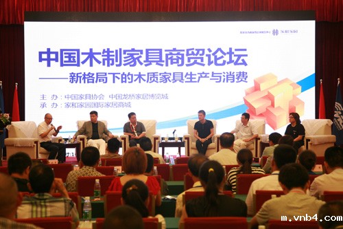 深圳市红木文化艺术协会副会长戴国、南康家具产业促进局局长蔡湖南、华日家具股份有限公司董事长周旭恩、深圳市名汉唐设计有限公司总经理卢涛、中国龙桥家居博览城企业联盟主席谭武、家和家园国际家居商城董事长李晓军以“新格局下的木质家具生产与消费”为话题展开高峰对话。