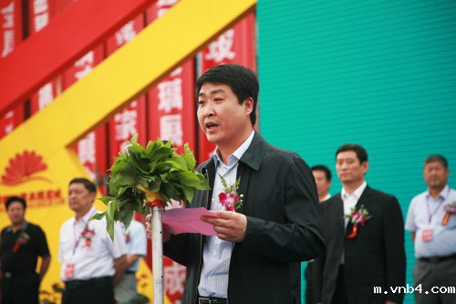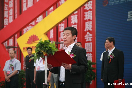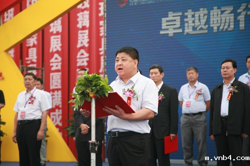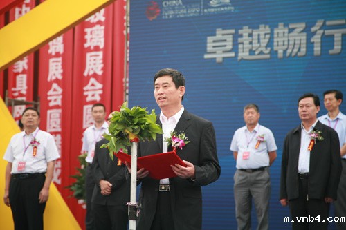 霸州市副市长吴全通在开幕式上预祝本届金属玻璃家具博览会圆满成功。