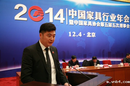 荣麟世佳(北京)家具制造有限公司总裁戚麟代表新增补的理事单位讲话