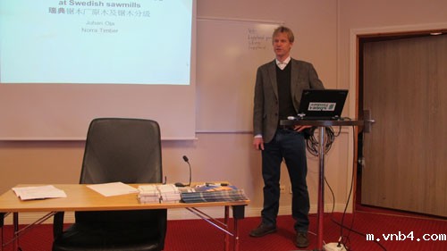 5月7日上午,考察团参加了瑞典木业协会组织的木材产品分类课程和本次项目介绍,Luleå理工大学教授讲解了瑞典木材分级、切割、干燥工艺。