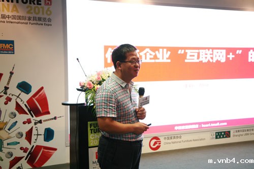 华日家居懂事长周旭恩以“传统企业‘互联网+’的思考”为题做主题演讲