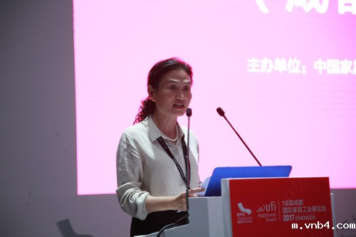 成都市政府副秘书长、办公厅主任廖成珍致辞。她表示,成都展是成都市重点培育的品牌展会。中国家具产业发展(成都)国际论坛是全国家具行业一年一度的盛会,对促进家具行业转型升级起到积极的推动作用。
