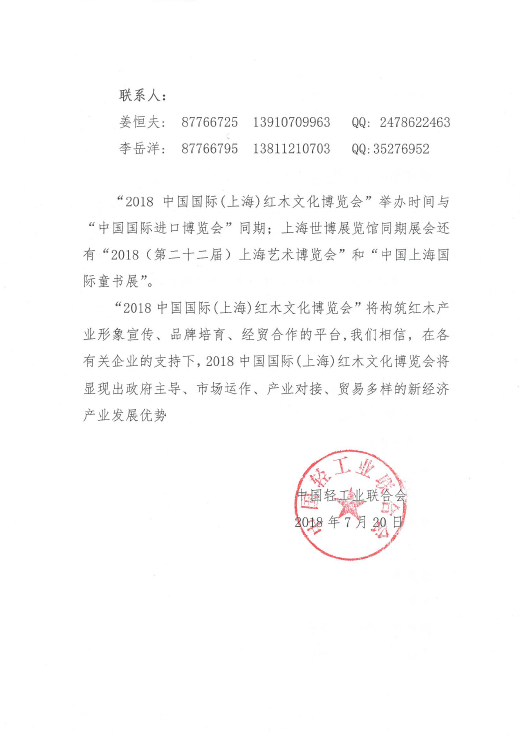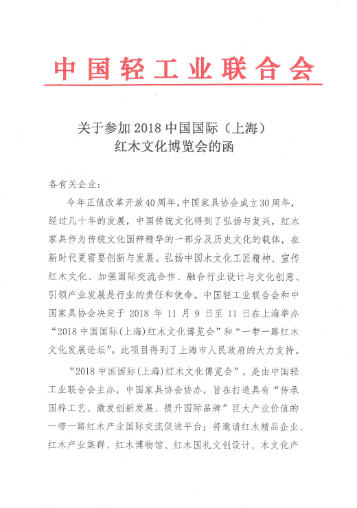 文件一:关于参加2018中国国际(上海)红木文化博览会的函