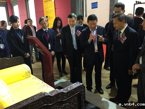 一众领导嘉宾参观大涌、东阳、石碁等红木产业集群展区和红木特色小镇展馆